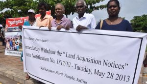 யாழ் வலிகாமம் வடக்கில் அரசபடையினரால் கையகப்படுத்தப்பட்ட தமது பாரம்பரிய நிலங்களை விடுவிக்குமாறுகோரி அந்நிலங்களின் உரிமையாளர்கள் கொழும்பில் அமைந்துள்ள ஜனாதிபதி செயலகத்துக்கு அருகாமையில் இன்று செவ்வாய்க்கிழமை (15) காலை 9.30 – 10.30 மணி வரை அமைதியான முறையில் கவனயீர்ப்புப்போராட்டமொன்றை முன்னெடுத்தனர்.