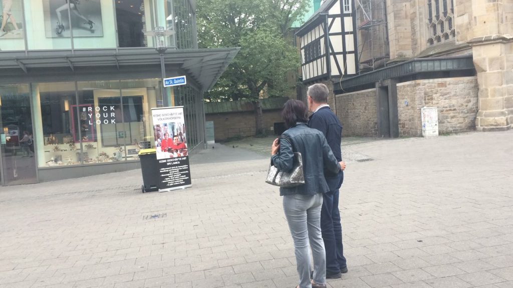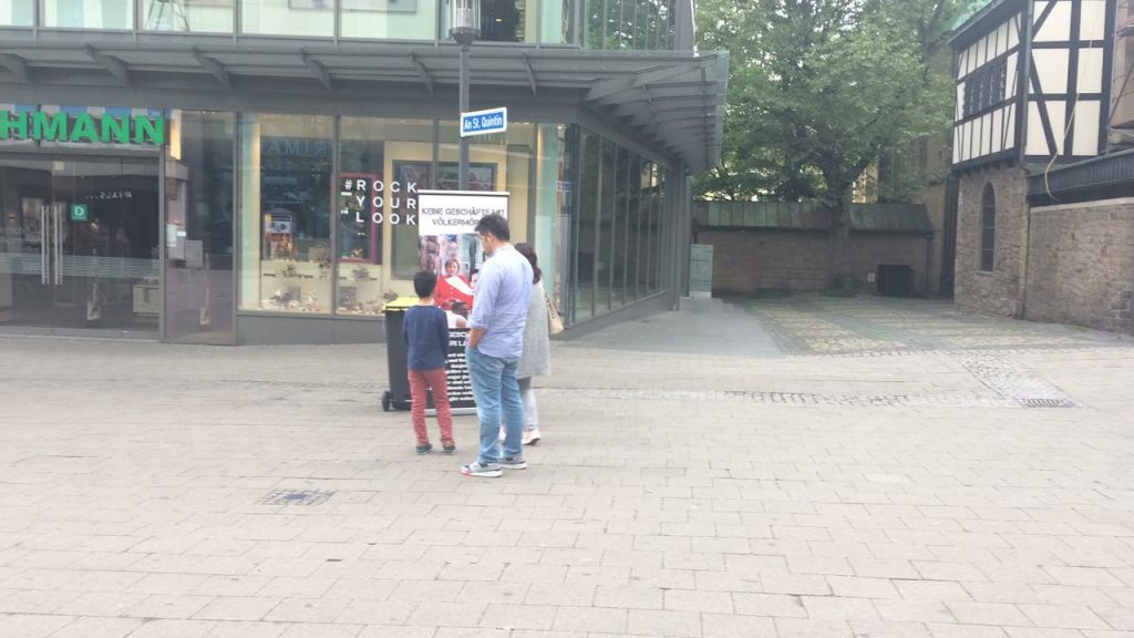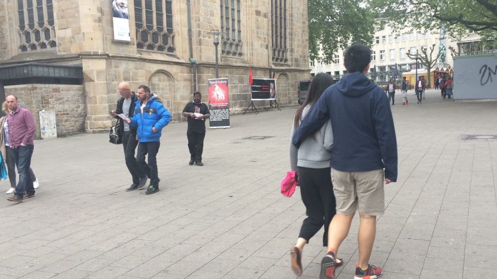 சிங்கள பேரினவாத அரசால் 70 ஆண்டுகளாக இனவழிப்பு செய்யப்படும் ஈழத்தமிழர்களுக்கு பரிகார நீதியை கோரி யேர்மனியில் 5 நாளாக நடைபெற்றுவரும் விழிப்புணர்வு ஊர்திப் பயணம் München நகரில் ஆரம்பிக்கப்பட்டு பல்வேறு நகரங்களை கடந்து இன்று மாலை 4 மணிக்கு Essen நகரை வந்தடைந்தது. வேற்றின மக்கள் நடமாடும் வழிப்பாதையில் கண்காட்சி அமைத்து , துண்டுப்பிரசுரங்கள் ஊடாக தமிழின அழிப்பை எடுத்துரைத்தனர். பல்லின மக்கள் பலர் கரிசனையோடு வைக்கப்பட்ட பதாதைகளை அவதானித்தது குறிப்பிடத்தக்கது.