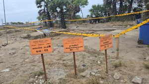 செம்மணி பகுதியில் “தடயவியல் அகழ்வாய்வுத்தளம் இல – 01” மற்றும் “தடயவியல் அகழ்வாய்வுத்தளம் இல – 02” என நீதிமன்றினால் அடையாளப்படுத்தப்பட்ட மனித புதைகுழிகளில் அகழ்வு பணிகள் முன்னெடுக்கப்பட்டு வருகின்றன.