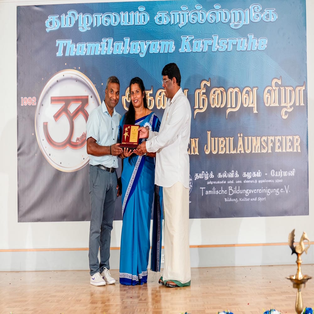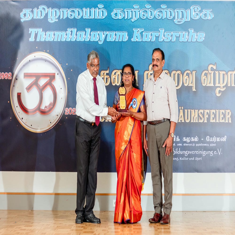 கார்ல்ஸ்றுகே தமிழாலயத்தின் 33ஆவது அகவை நிறைவு விழாக் கடந்த 19.07.2025 சனிக்கிழமை 10:00 மணிக்குப் பொதுச்சுடரேற்றலோடு தொடங்கிச் சிறப்பாக நடைபெற்றது. பொதுச்சுடரினைத் தமிழர் ஒருங்கிணைப்புக் குழுவின் யேர்மனியக் கிளைப் பொறுப்பாளர் திரு. யோன்பிள்ளை சிறிரவீந்திரநாதன் அவர்கள் ஏற்றி வைத்தார். சிறப்பு விருந்தினர்கள் தமிழினத்தின் பண்பாட்டிற்கிசைவாக வரவேற்றழைக்கப்பட்டனர். அகவை நிறைவு விழா அரங்க நிகழ்வுகளுக்குச் செல்லுமுன், கடந்த ஆண்டு இயற்கை எய்திவிட்ட ஆசிரியை திருமதி அன்னலட்சுமி தியாகேசர் அவர்களுக்கான நினைவு வணக்கம் இடம்பெற்றது. ஈகைச்சுடரினைத் தமிழாலயத்தின் முன்னாள் நிருவாகியும் ஆசிரியருமான திரு. குணரட்ணம் கிருபாகரன் அவர்கள் ஏற்ற, மலர்மலையை அன்னாரின் பேரன் திரு. சண்முகநாதன் தரன் அவர்கள் அணிவித்து வணங்கியதைத் தொடர்ந்து மலர் மற்றும் சுடர் வணக்கம் நடைபெற்றது.