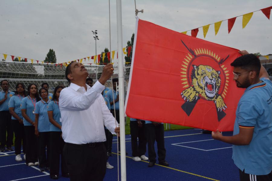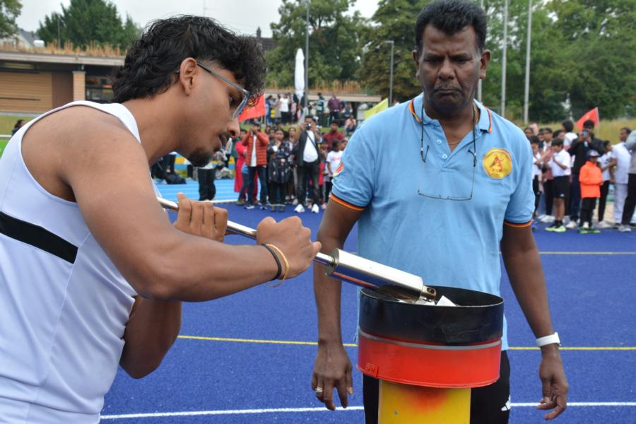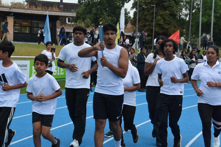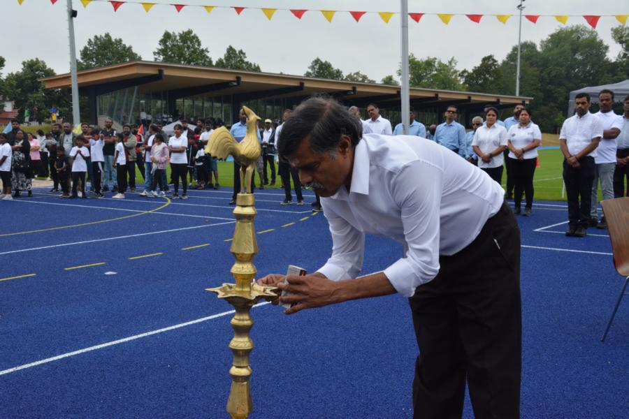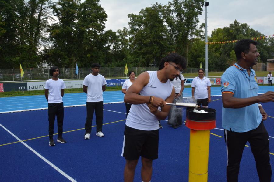 பொதுச்சுடரினை ஏற்றிவைக்க, தமிழர் விளையாட்டுக் கூட்டமைப்பின் பொறுப்பாளர் திரு. தர்மலிங்கம் இராஜகுமாரன் அவர்கள் யேர்மனிய நாட்டுத் தேசியக்கொடியினையும் தமிழர் ஒருங்கிணைப்புக் குழு யேர்மனியின் தென்மாநிலத்தின் மாநிலப் பொறுப்பாளர் திரு. சிறிகாந்தான் அவர்கள் தமிழீழத் தேசியக்கொடியினையும் தமிழ்க் கல்விக் கழகம் யேர்மனியின் கல்விப்பிரவுத் துணைப் பொறுப்பாளர் திரு. ராமேஸ் ஜெயக்குமார் அவர்கள் தமிழ்க்கல்விக்கழகக் கொடியினையும் ஏற்றிய பின்னர் அகவணக்கத்தோடு விளையாட்டுப் போட்டிகள் ஆரம்பமாகியது.