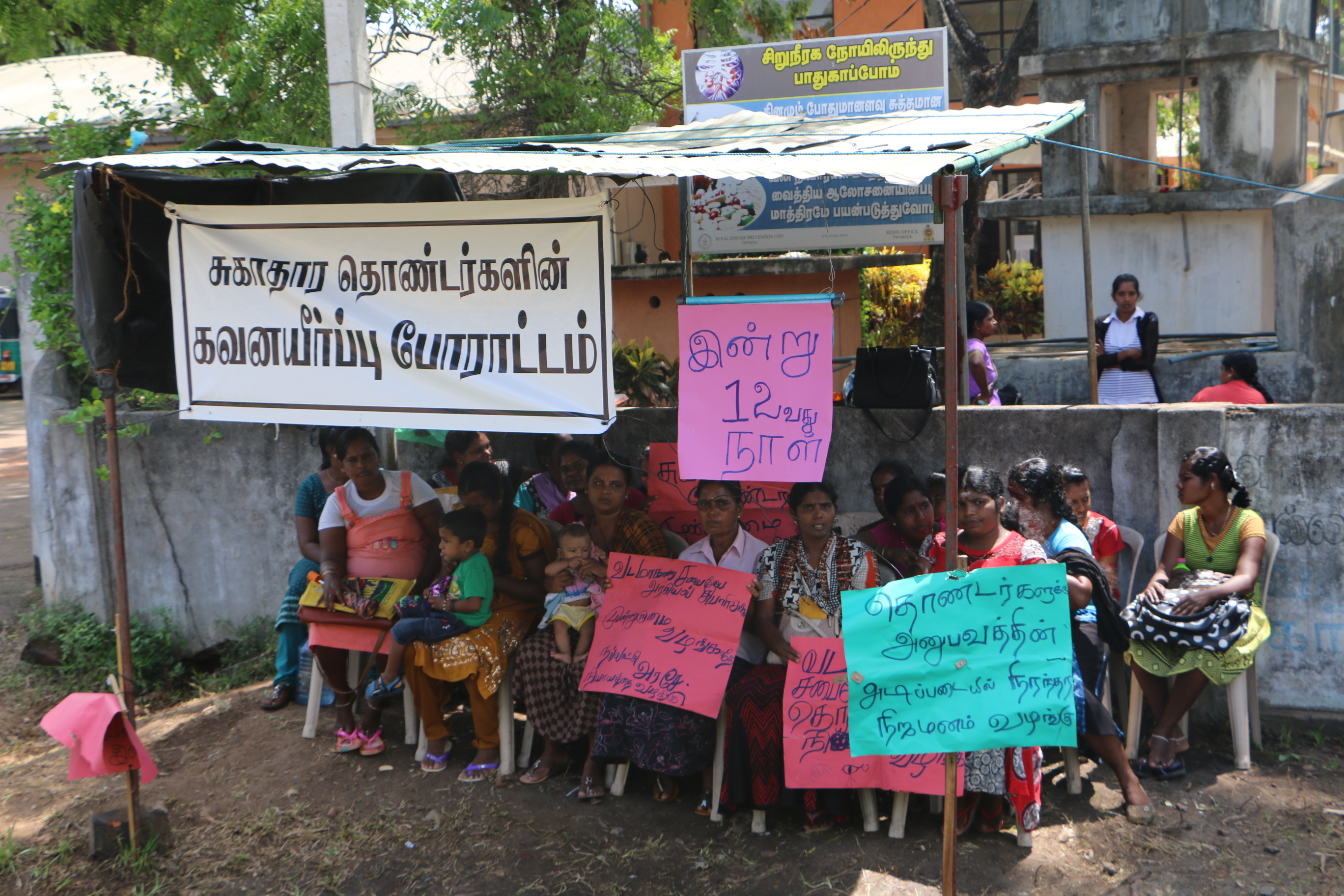 கடந்த யுத்த காலத்தில் சுகாதார தொண்டர்களாக பணியாற்றியும் தமக்கான நிரந்தர நியமனங்கள் வழங்கப்படாததன் காரணமாக தமக்கான நிரந்தர நியமனம் கிடைக்கும் வரை வவுனியா சுகாதார வைத்திய அதிகாரியின் பிரதான அலுவலகத்திற்கு முன்பாக தொடர் ஈடுபட்டுள்ளவர்களை வன்னி மாவட்ட பாராளுமன்ற உறுப்பினரும் மாவட்ட அபிவிருத்திக்குழு இனத்தலைவருமான கே.காதர் மஸ்தான் நேரில் சென்று சந்தித்து கலந்துரையாடினார்.இதன்போது போராட்டத்தில் ஈடுபட்டுள்ளவர்களால் வட மாகாணத்தில் தொடர் போராட்டத்தில் ஈடுபட்டுள்ள 820 தொண்டர்களுக்கும் நிரந்தர நியமனத்தை பெற்றுத்தர உதவுமாறு கேட்டுக்கொண்டனர்.