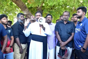 மன்னார் பிரஜைகள் குழுவின் தலைவர் அருட்தந்தை மார்க்கஸ் அடிகளாரின் அழைப்பிற்கு இணங்க அருட்தந்தையர்கள், மூர்வீதி ஜும்மா பள்ளி பிரதம மௌலவி, பொது அமைப்புக்களின் ஒன்றிய பிரதிநிதிகள், சமூக செயற்பாட்டாளர்கள், சிவில் அமைப்புகள் பொதுமக்கள் என நூற்றுக்கணக்கானவர்கள் இன்றைய தினம் திங்கட்கிழமை (4) காலை மன்னார் மாவட்டச் செயலகத்திற்கு முன் ஒன்றுகூடினர்.