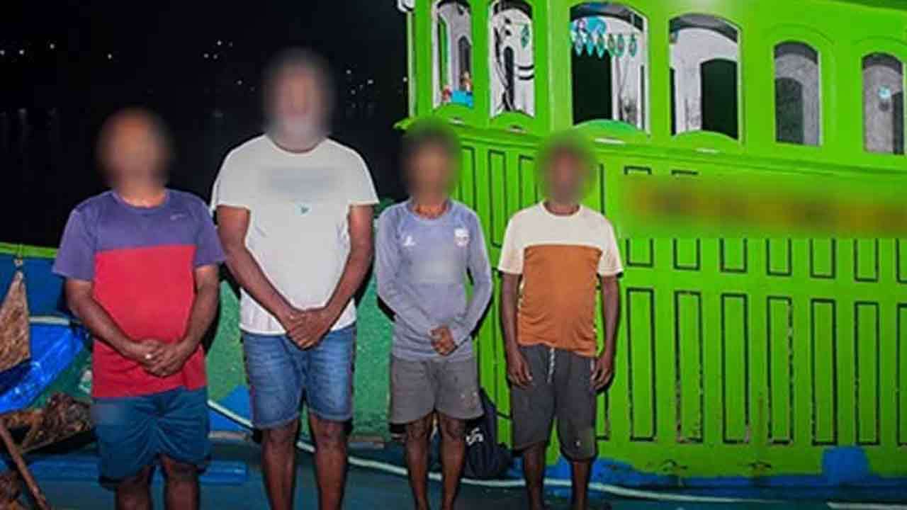 கடற்படையினர் மீன்பிடி படகை சோதனை செய்து, அதில் இருந்த நான்கு இந்திய மீனவர்களையும் கைது செய்துள்ளனர்.