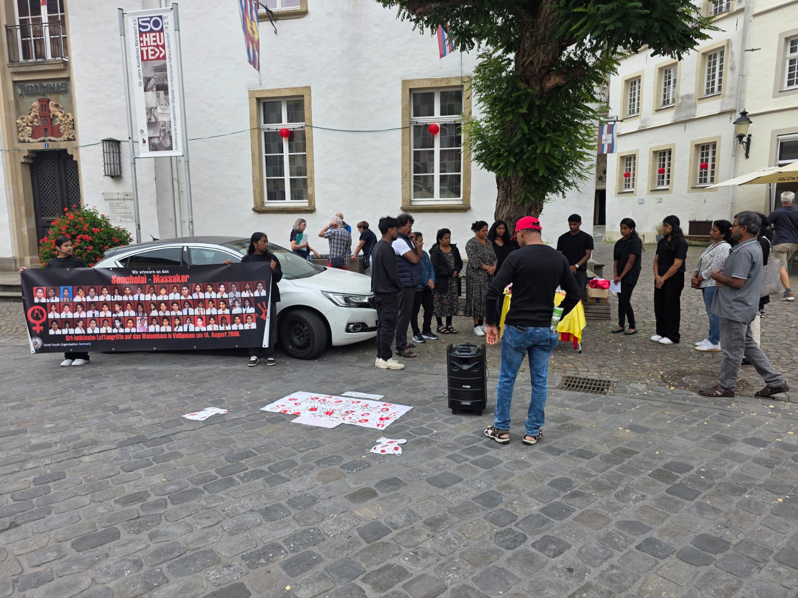 சிங்கள பயங்கரவாத அரசால் நிகழ்த்தப்படும் தமிழின அழிப்பின் ஒர் அங்கமான செஞ்சோலை படுகொலை யேர்மனியில் தமிழ் இளையோர் அமைப்பால் 14.08.2025 அன்றும் பல நகரங்களில் உணர்வுப்பூர்வமாக நினைவுகூறப்பட்டது.