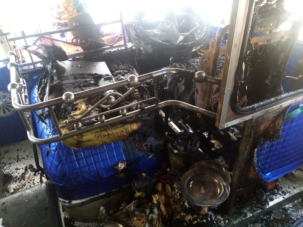 சாரதி பேருந்தில் இருந்த நிலையிலேயே பஸ் தீப்பற்றி எரிந்துள்ளது.