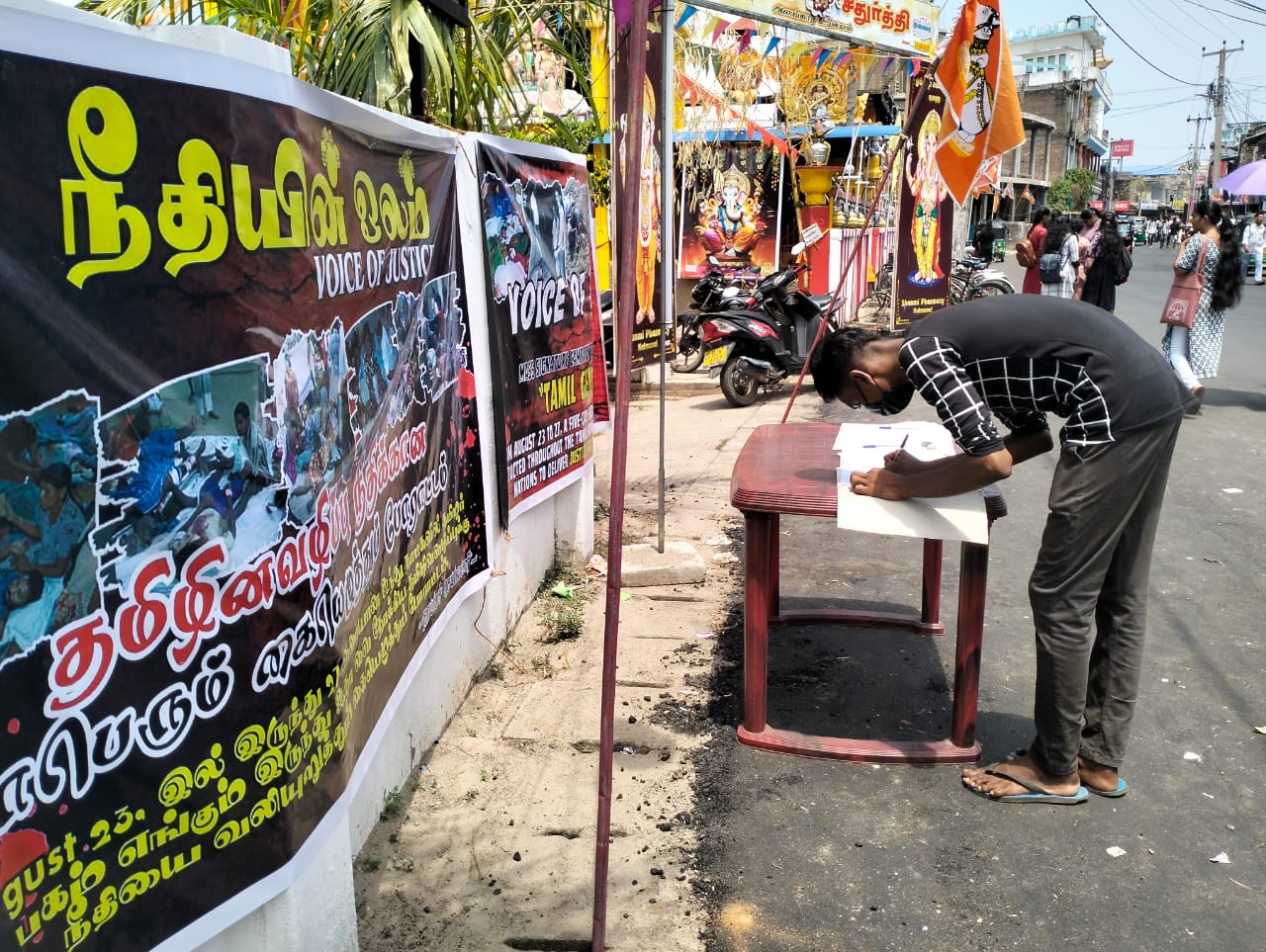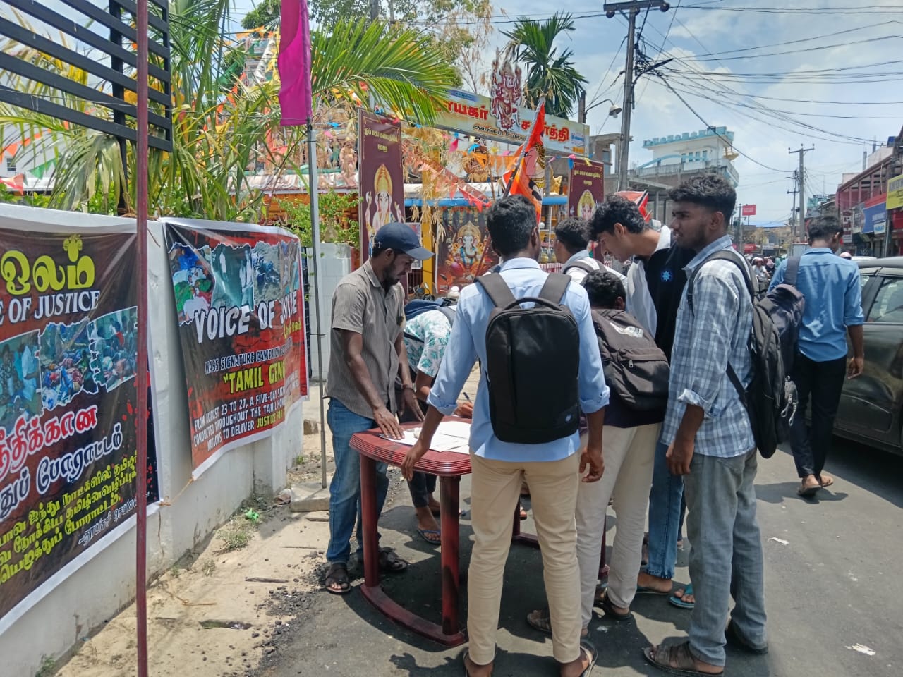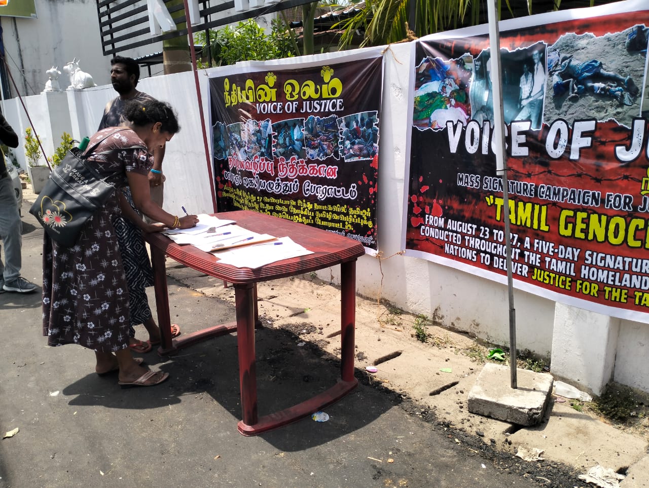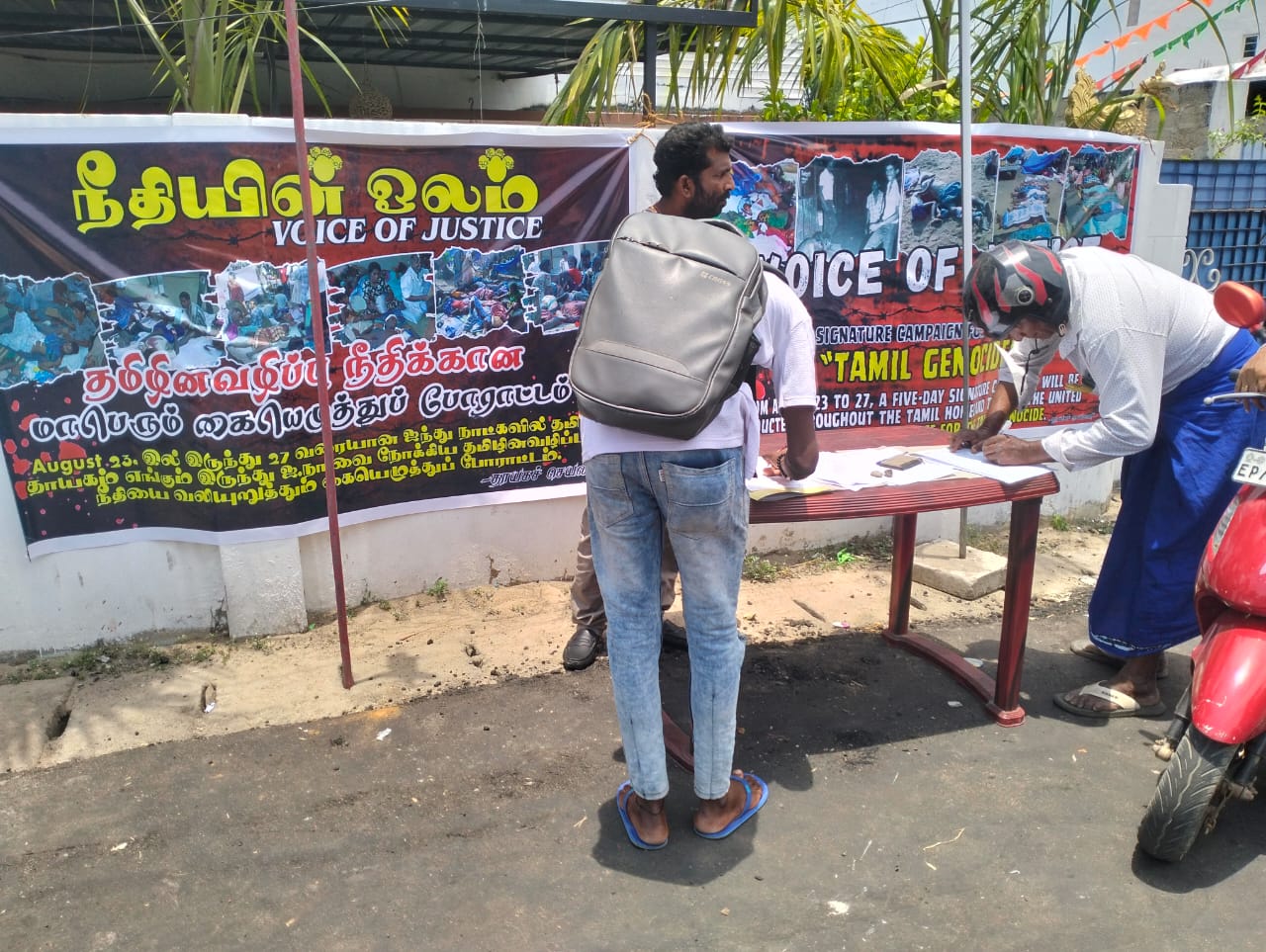 இதில் பொதுமக்கள், இளைஞர்கள் குறிப்பாக இன, மத பேதமின்றி தமிழ், முஸ்லிம் இளைஞர்கள், மாணவர்கள் என பல நூறு பேர் தங்களது கையொப்பங்களை ஆர்வத்தோடு இட்டதோடு தமிழின அழிப்பின் வலிகளையும் ஆர்வத்தோடு கேட்டறிந்ததோடு தமது கையப்பத்தை இட்டிருந்தார்கள்.