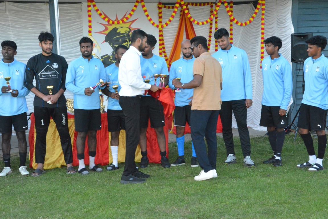 போட்டியில் வெற்றி பெற்ற அனைத்து வீரர்களுக்கும் வெற்றி கிண்ணங்கள் மற்றும் பதக்கங்கள் வழங்கப்பட்டதுடன் இந்த உதைபந்தாட்டச் சுற்றுப்போட்டியை சிறந்த முறையில் நடாத்தி முடிக்க ஒத்துழைப்பு வழங்கிய அனைத்துக் கழகங்களுக்கும் மற்றும் உதவிய அனைவருக்கும் நன்றியைத் தெரிவித்ததைத் தொடர்ந்து, தேசியக் கொடிகள் இறக்கி வைக்கப்பட்டன. இறுதியாக” தமிழரின் தாகம் தமிழீழத் தாயகம்” என்ற எமது தாரக மந்திரத்துடன் இச் சுற்றுபோட்டி இனிதே நிறைவு பெற்றது.