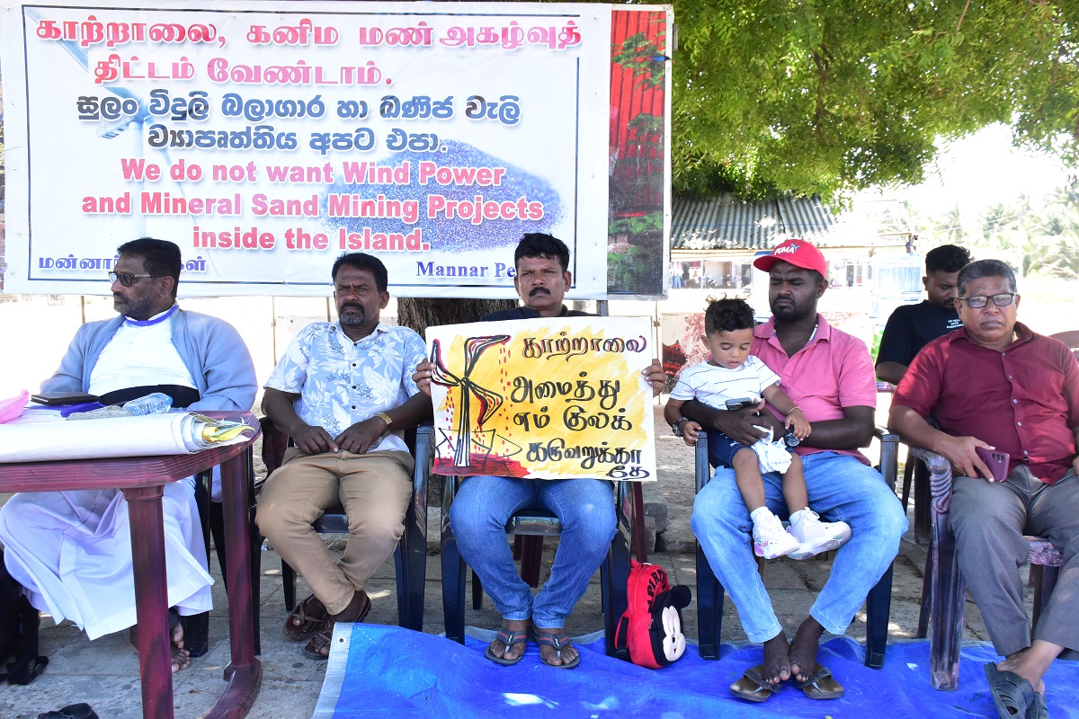 மன்னாரில் புதிதாக முன்னெடுக்கப்படவுள்ள காற்றாலை மின் கோபுரம் அமைத்தல் மற்றும் கனிய மணல் அகழ்வு ஆகியவை முழுமையாக நிறுத்தும் வரை தமது போராட்டம் தொடரும் என போராட்டத்தில் ஈடுபட்டவர்கள் தெரிவித்தனர்.