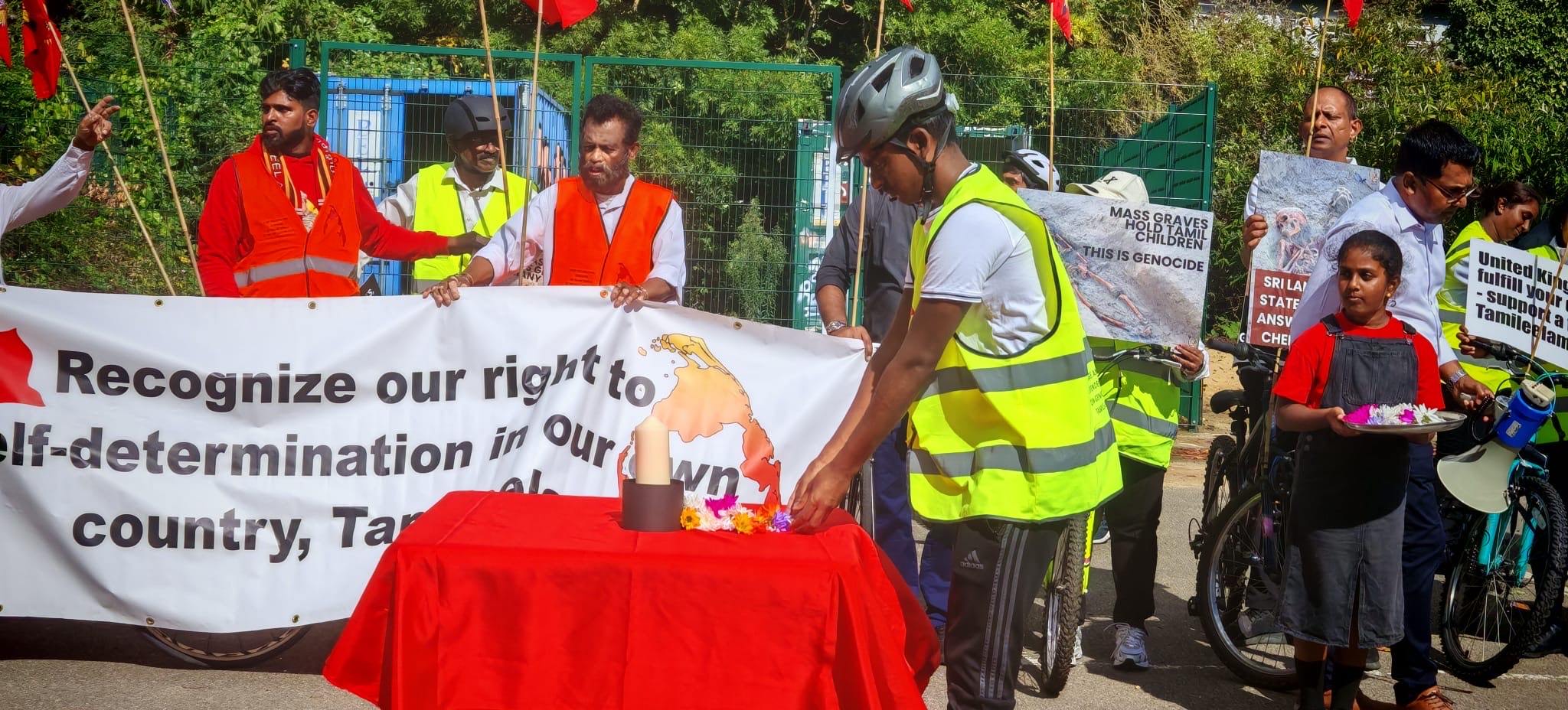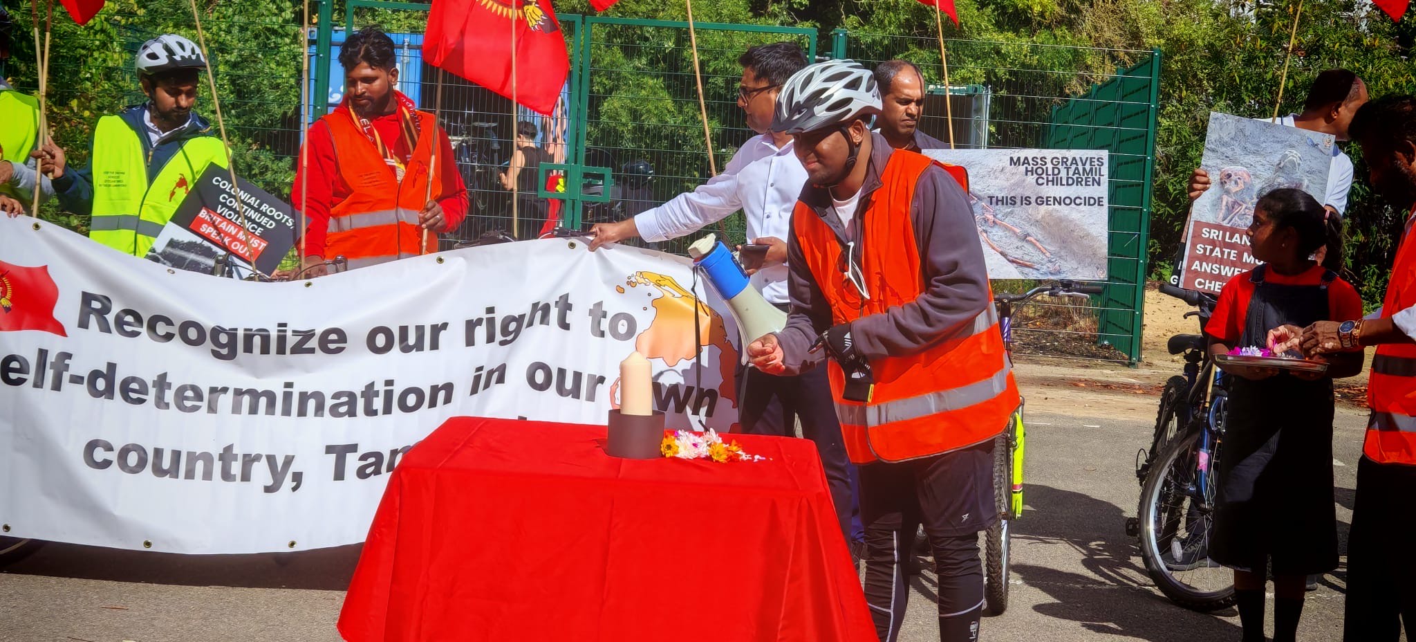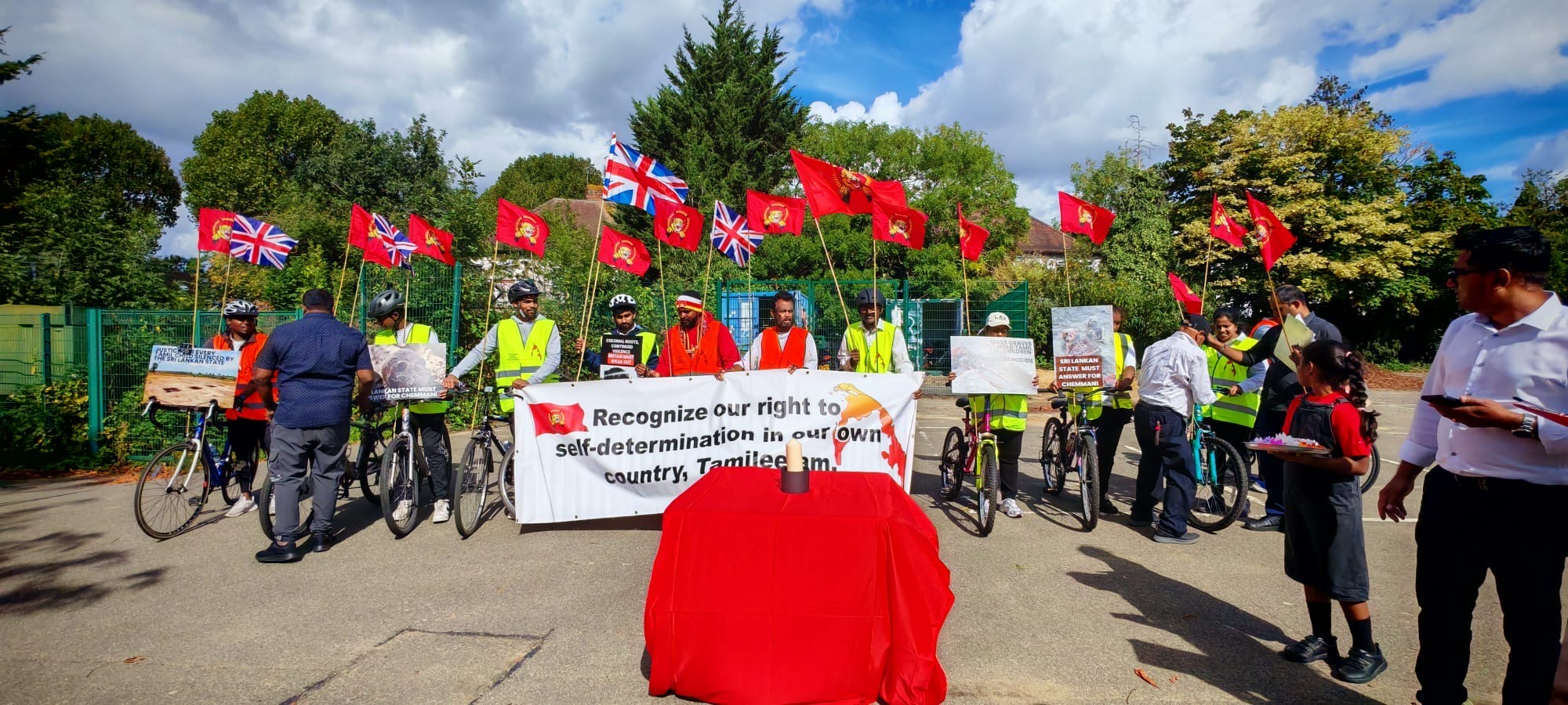 தொடங்கவுள்ள மனித உரிமைகள் ஆணையகத்தின் 60 கூட்டத் தொடரினை முன்னிட்டு சிறிலங்கா பேரினவாத அரசினால் திட்டமிட்டு நடாத்தப்படுகின்ற தமிழின அழிப்பிற்கு அனைத்துலக சுயாதீன விசாரணைநடாத்த வேண்டியும் தமிழீழமே தமிழர்களுக்கான நிரந்தரத் தீர்வு என்பதை வலியுறுத்தியும் ஐ .நா நோக்கியஈருருளி பயணக்கவனயீர்ப்பு போராட்டம் 28.08.2025 இன்று பிரித்தானியா பிரதமர் இல்லத்திலிருந்து ஆரம்பித்து அனைத்துலகக் குற்றவியல் நீதிமன்றம் ,ஐரோப்பிய பாராளுமன்றம் ஊடாக 15.09.2025 அன்று ஜெனிவா ஐக்கிய நாடுகள் அவை முன்றலை வந்தடைவுள்ளது