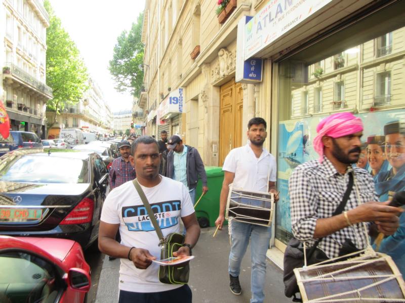 திங்கட்கிழமை தமிழர்கள் அதிகமாக பங்குபற்றும் குட்டி யாழ்ப்பாணம் என்று அழைக்கப்படும் லாச்செப்பேல் பகுதியிலும், அதற்கு அடுத்ததாக தமிழர்கள் அதிகம் வாழும் லாக்கூர்னோவ் பகுதியிலும் தமிழர் கலைபண்பாட்டுக்கழகத்தினர் பறையொலி எழுப்பி முள்ளிவாய்க்கால் பாடல்கள் பாடி தமிழீழ மக்களை நீதிக்கான பேரணிக்கு அழைப்பு விடுத்தனர். அத்துடன் அனைத்து வர்த்தக நிலையங்களிலும் முள்ளிவாய்க்கால் நினைவுச்சின்னம் பொறிக்கப்பட்ட கறுப்புக் கொடிகளும் பலூன்களும் கட்டப்பட்டன. துண்டுப்பிரசுரங்களும் வழங்கப்பட்டன.