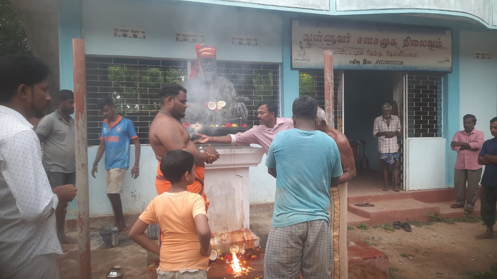 முன்னாள் பிரதேச சபை உறுப்பினர் KS.அஜித்குமாரின் தாயினுடைய பிறந்த தினத்தை முன்னிட்டு கருங்கல்லினாலான வள்ளுவர் சிலையே இவ்வாறு திறந்து வைக்கப்பட்டுள்ளது.