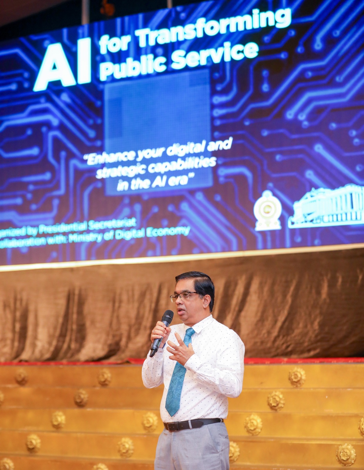 ‘AI for Transforming Public Service’ என்ற தலைப்பின் கீழ், ஜனாதிபதி செயலகத்தின் ஒத்துழைப்புடன் டிஜிட்டல் பொருளாதார அமைச்சினால் ஏற்பாடு செய்யப்பட்ட இந்த செயலமர்வில் அரசாங்க அமைச்சுகளின் நிறைவேற்று அதிகாரிகள் பங்கேற்றனர்.