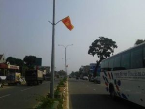 இன்று காலியில் இருந்து கிளிநொச்சிக்கு பேருந்து ஒன்றில் வந்த மஹாசேன் பலகாய சிங்கள இனவாதக் கும்பல் ஒன்று கிளிநொச்சி நகரின் நடுவில் உள்ள மின்கம்பங்களில் இலங்கையின் தேசியக் கொடியில் முஸ்லீம் மற்றும் தமிழ் மக்களைப் பிரதிநிதித்துவப் படுத்துகின்ற இரு நிறங்களும் அற்ற இலங்கை தேசியக்கொடிகளை பறக்கவிட்டு யாழ் நோக்கி தப்பி ஓடி உள்ளனர்.