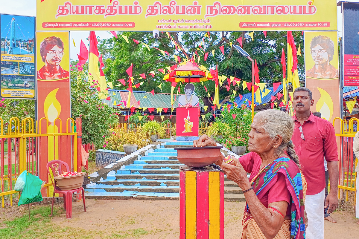நல்லூர் பின் வீதியில் அமைந்துள்ள தியாக தீபத்தின் நினைவிடத்தில், சுடரேற்றி, திருவுருவ படத்திற்கு மாலை அணிவித்து, மலர் தூவி அஞ்சலி செலுத்தப்பட்டது.