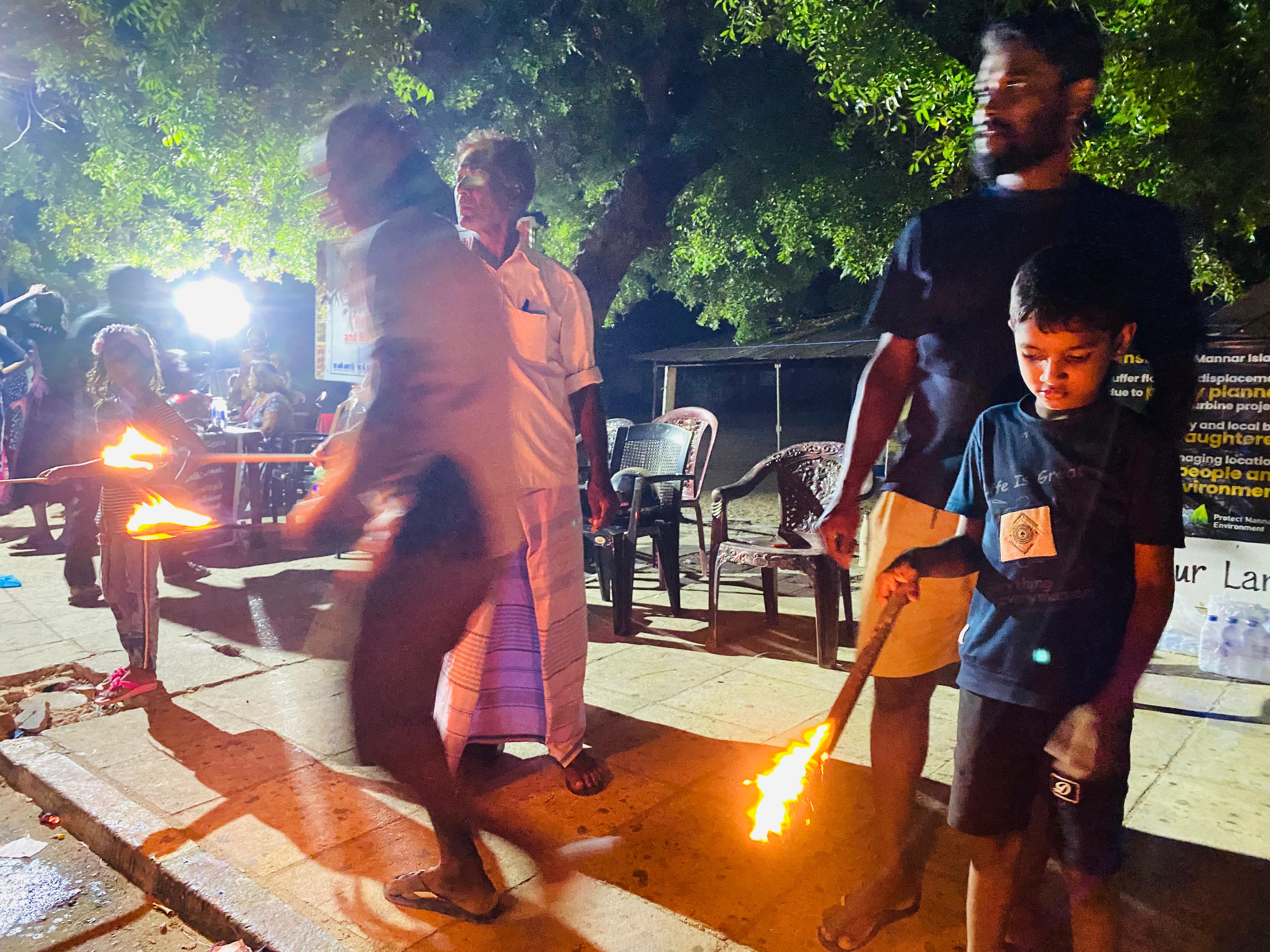 மன்னாரில் காற்றாலை மற்றும் கனிய மணல் அகழ்வுக்கு எதிராக முன்னெடுத்து வரும் போராட்டம் ஞாயிற்றுக்கிழமை (செப்டெம்பர் 21) 50 ஆவது நாளை எட்டிய நிலையில் தீப்பந்தப் போராட்டம் ஒன்றை முன்னெடுத்துள்ளனர்.
