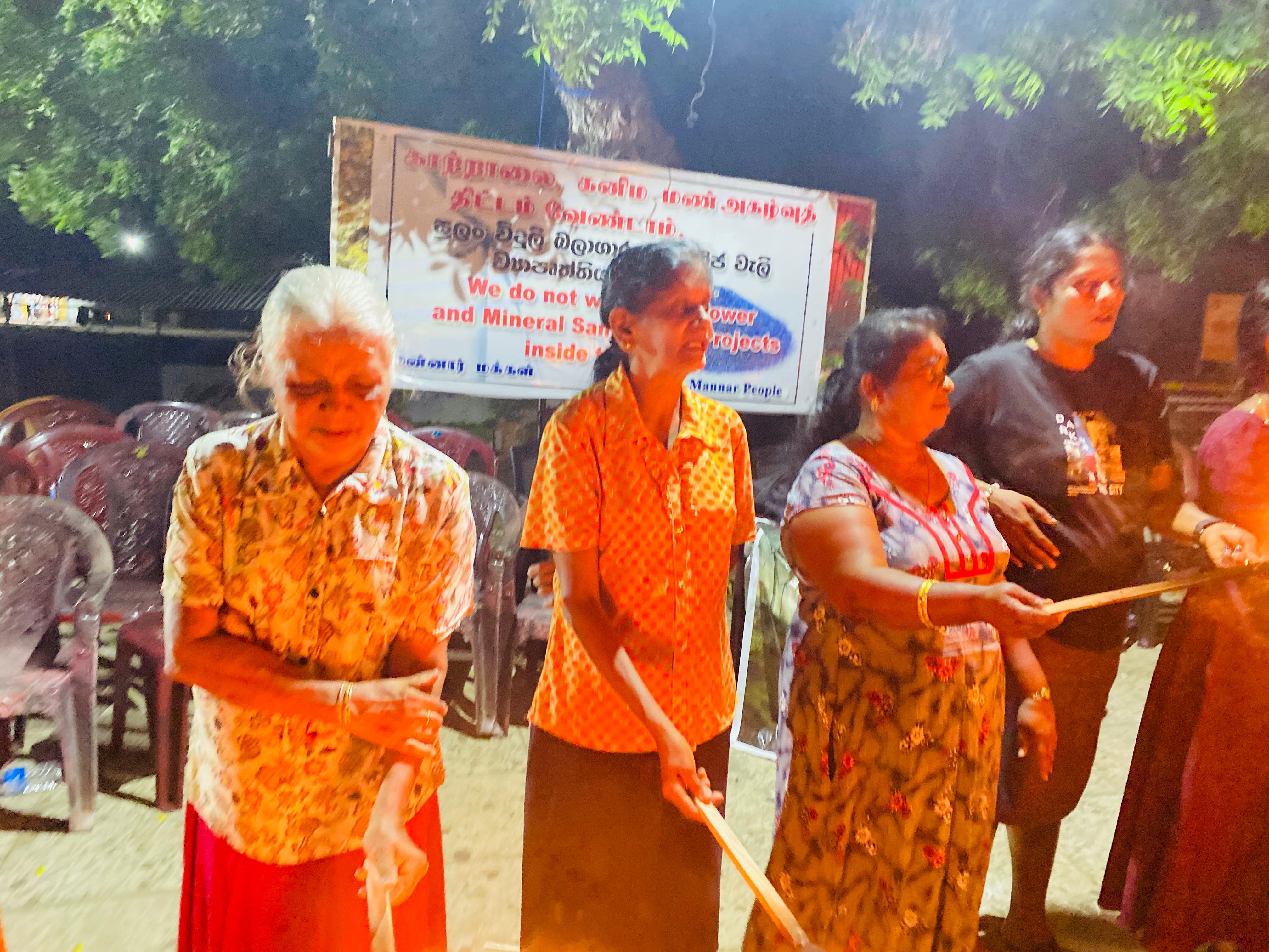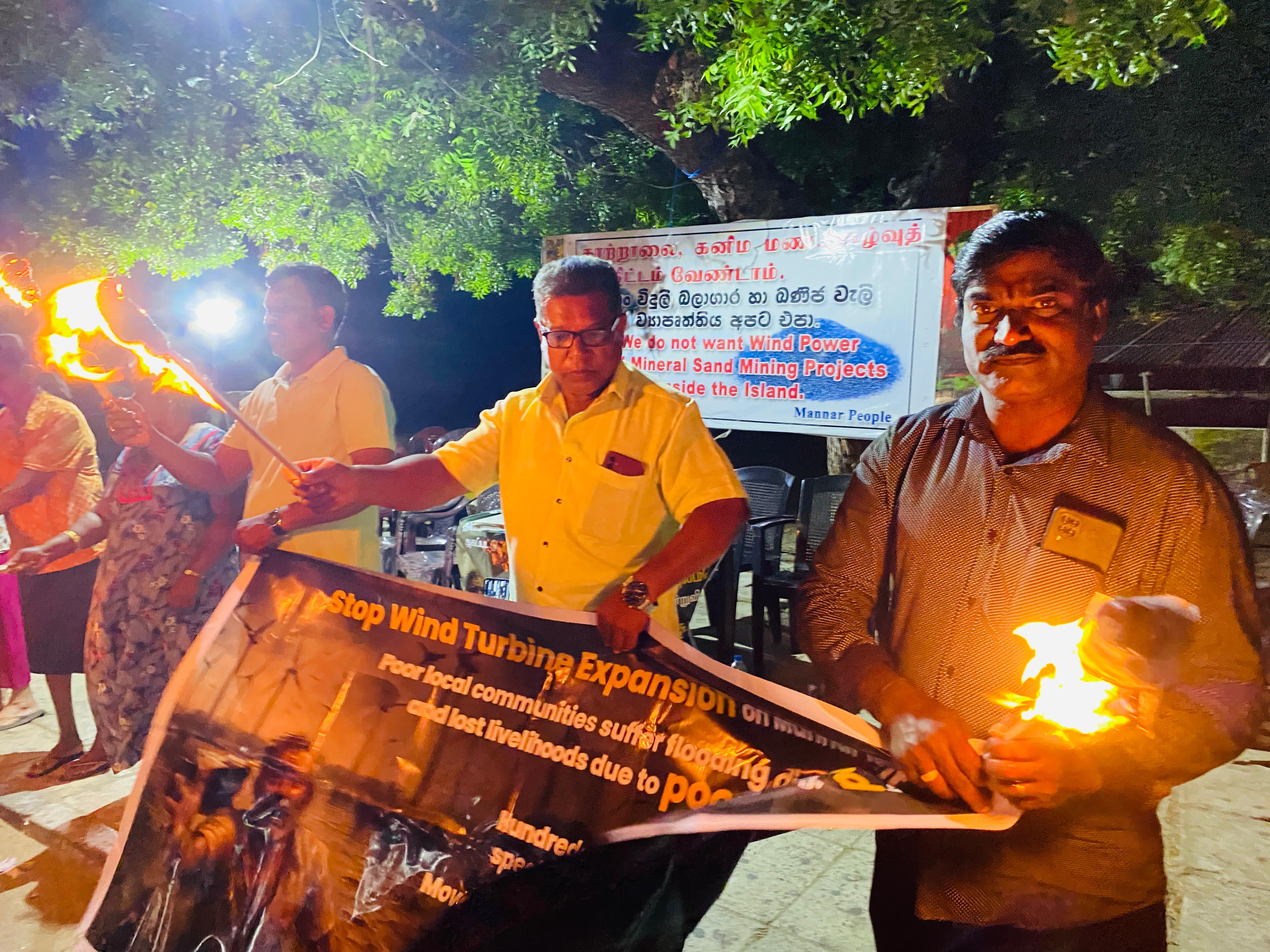 மன்னாரில் காற்றாலை கோபுரங்கள் அமைத்தல் மற்றும் கனிய மணல் அகழ்வு ஆகியவற்றுக்கு எதிராக மன்னார் பிரஜைகள் குழுவின் ஏற்பாட்டில், இளைஞர் மற்றும் மன்னார் மக்கள் இணைந்து முன்னெடுத்து வருகின்றனர்.