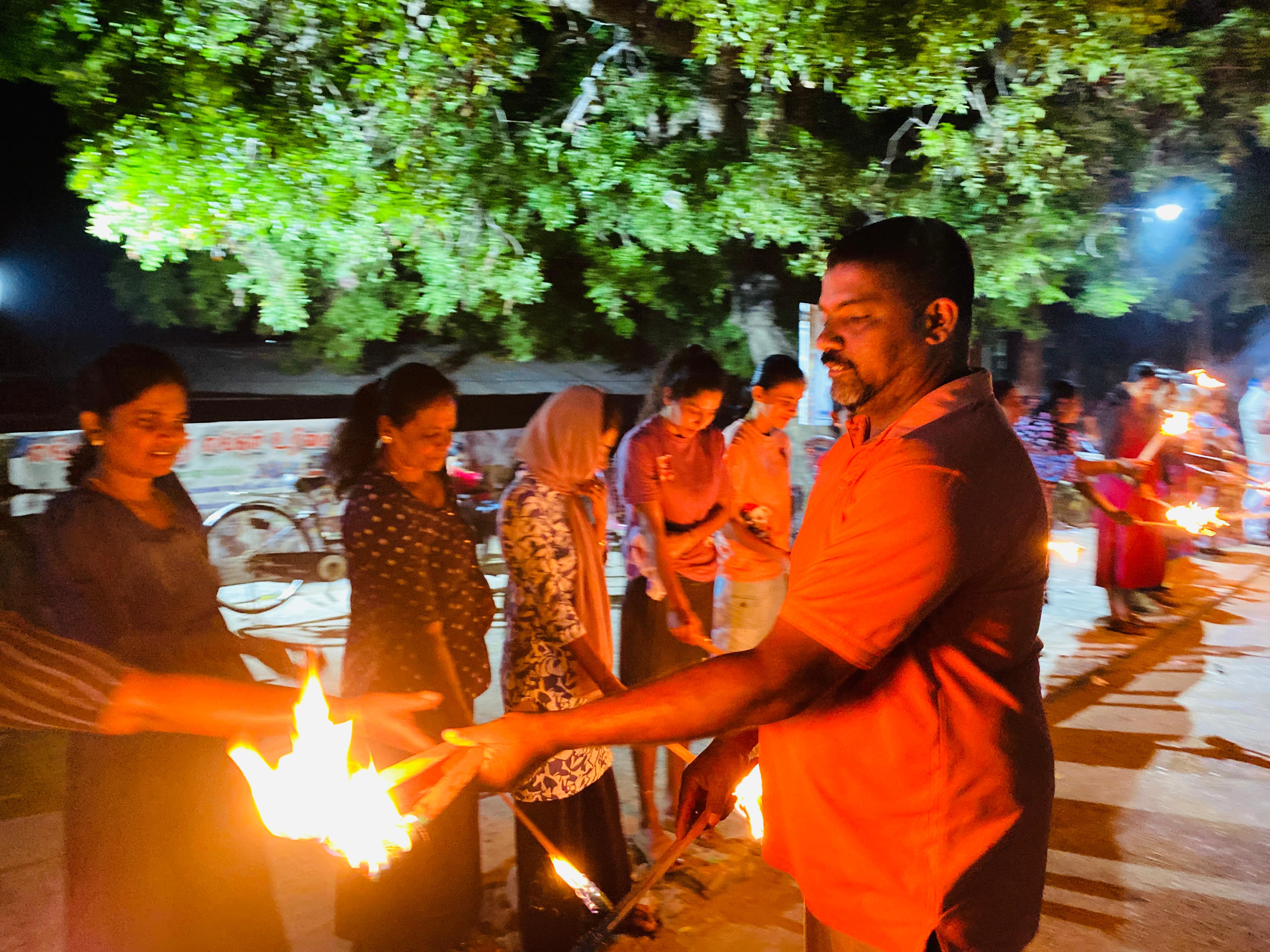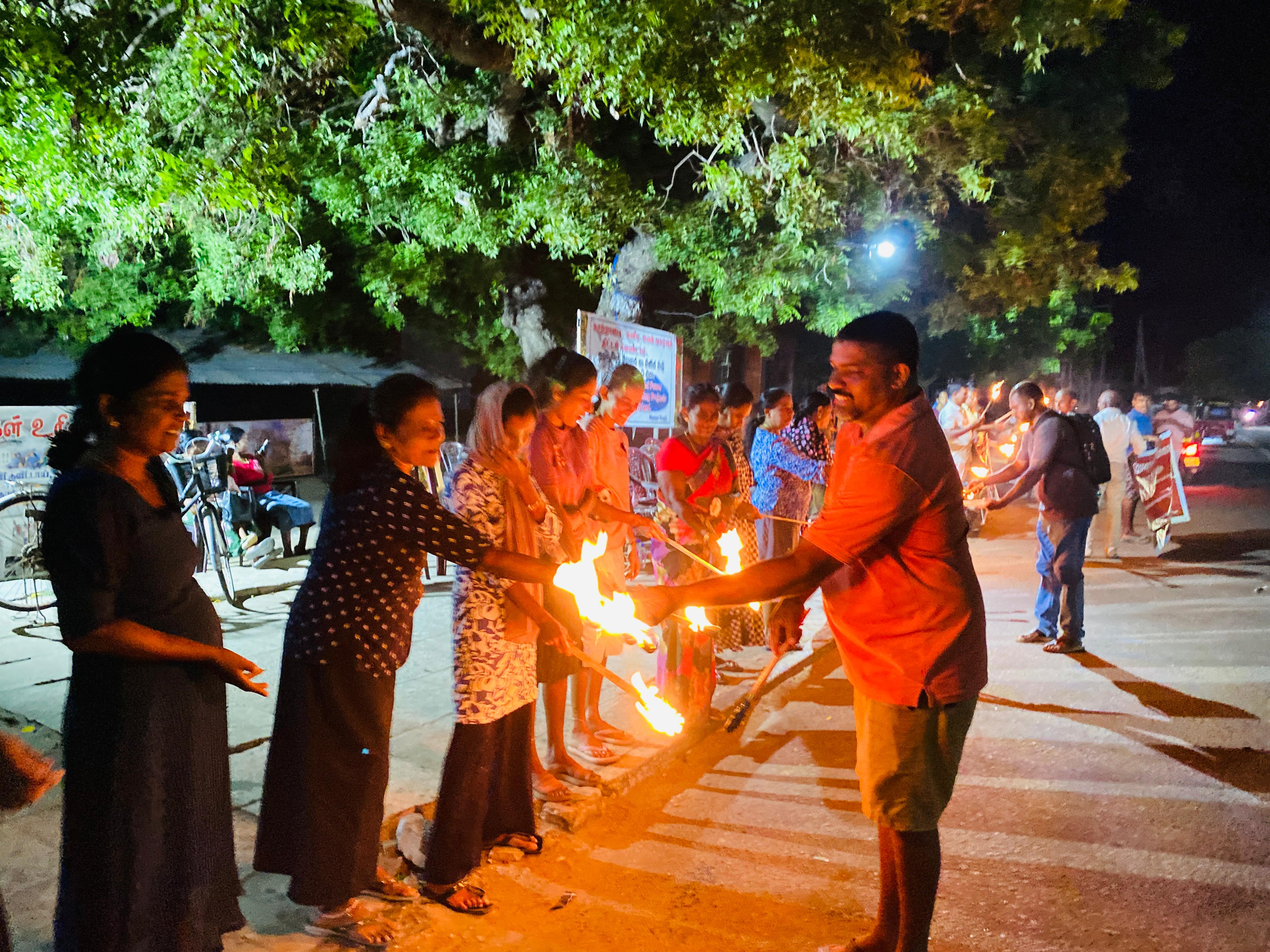 இதன் போது கையில் தீ பந்தத்தை ஏந்தியவாறு போராட்டத்தில் ஈடுபட்டனர்.
