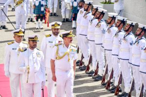 நேற்று (2025 செப்டம்பர் 22) காலை கடற்படைத் தலைமையகத்திற்கு சென்ற இந்திய கடற்படைத் தளபதி அட்மிரல் தினேஷ் கே திரிபாதிக்கு கடற்படையின் சம்பிரதாயபூர்வ மரியாதை வழங்கப்பட்டது.