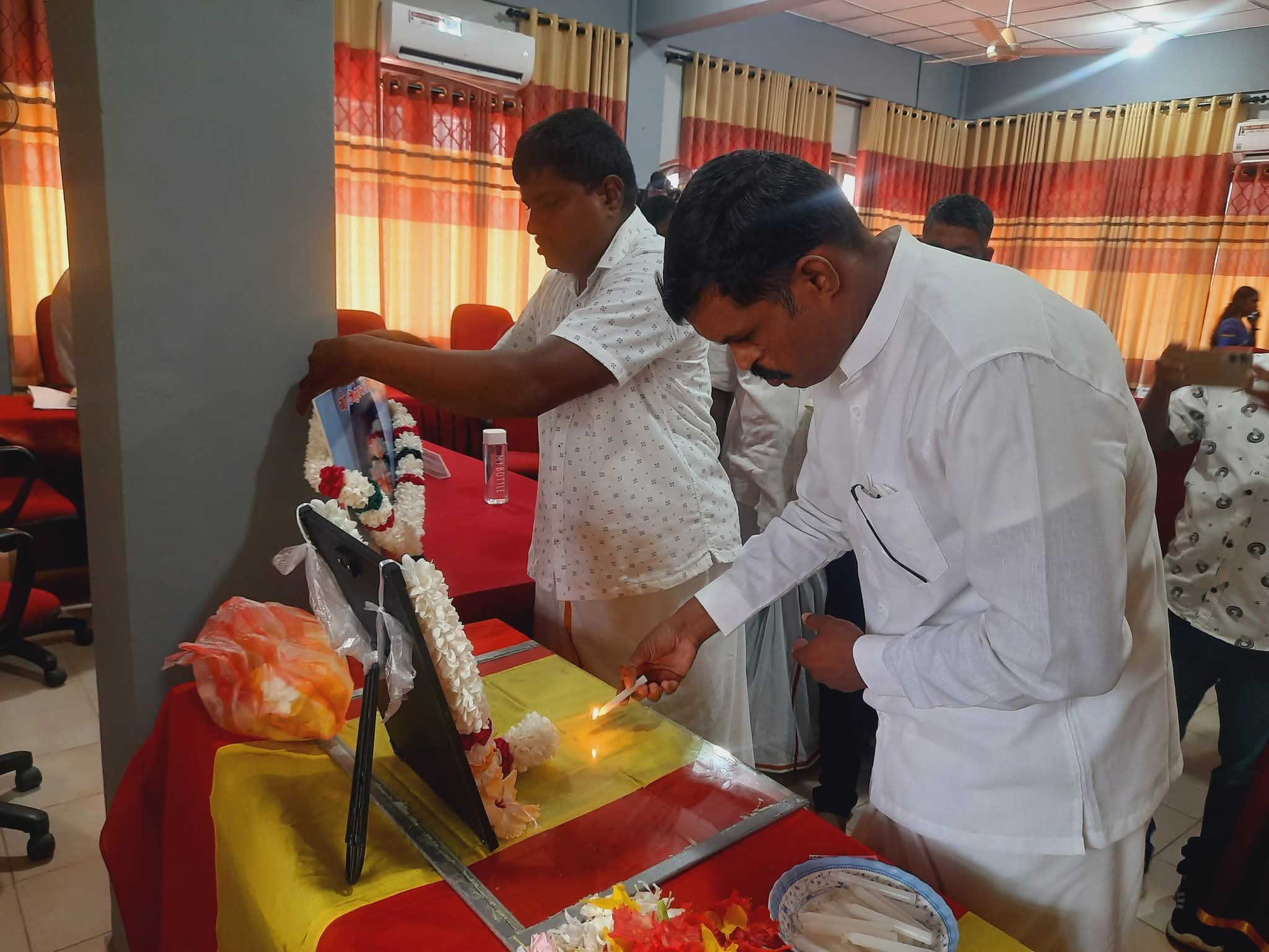 சாவகச்சேரிப் பிரதேசசபையின் மாதாந்த அமர்வு 25.09.2025 வியாழக்கிழமை சபையின் சபா மண்டபத்தில் இடம்பெற்றிருந்த நிலையில் தியாக தீபம் திலீபனின் உருவப்படம் வைத்து அஞ்சலி செலுத்தப்பட்டது.