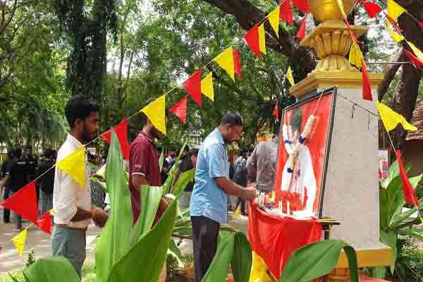 அதனைத் தொடர்ந்து,திலீபனின் உருவப்படத்திற்கு பல்கலைக்கழக சமூகத்தினரால் மலர் மாலை அணிவித்து மலர் தூவியும் அஞ்சலி செலுத்தப்பட்டதுடன் பலரும் உணர்வு பூர்வமாக கலந்து கொண்டனர்.