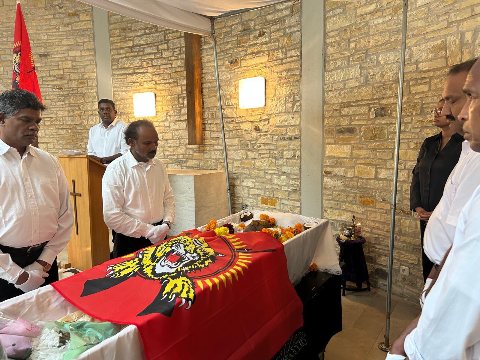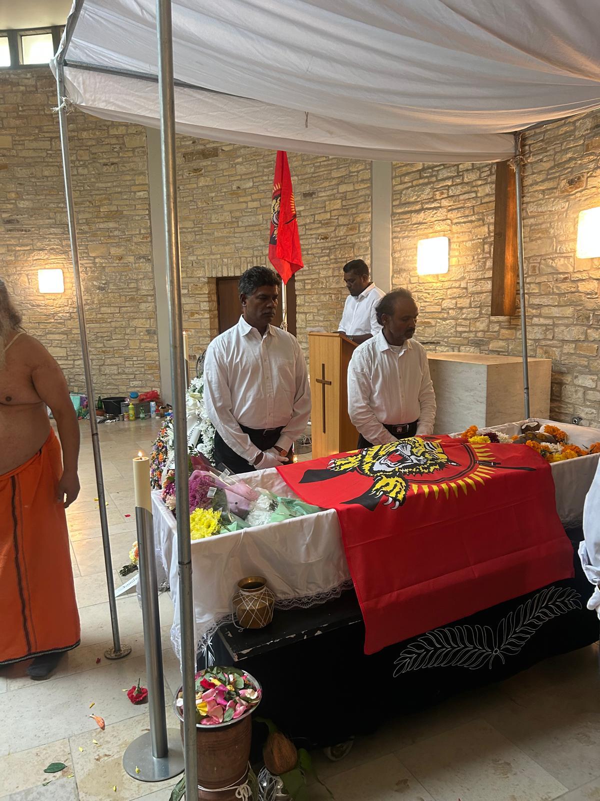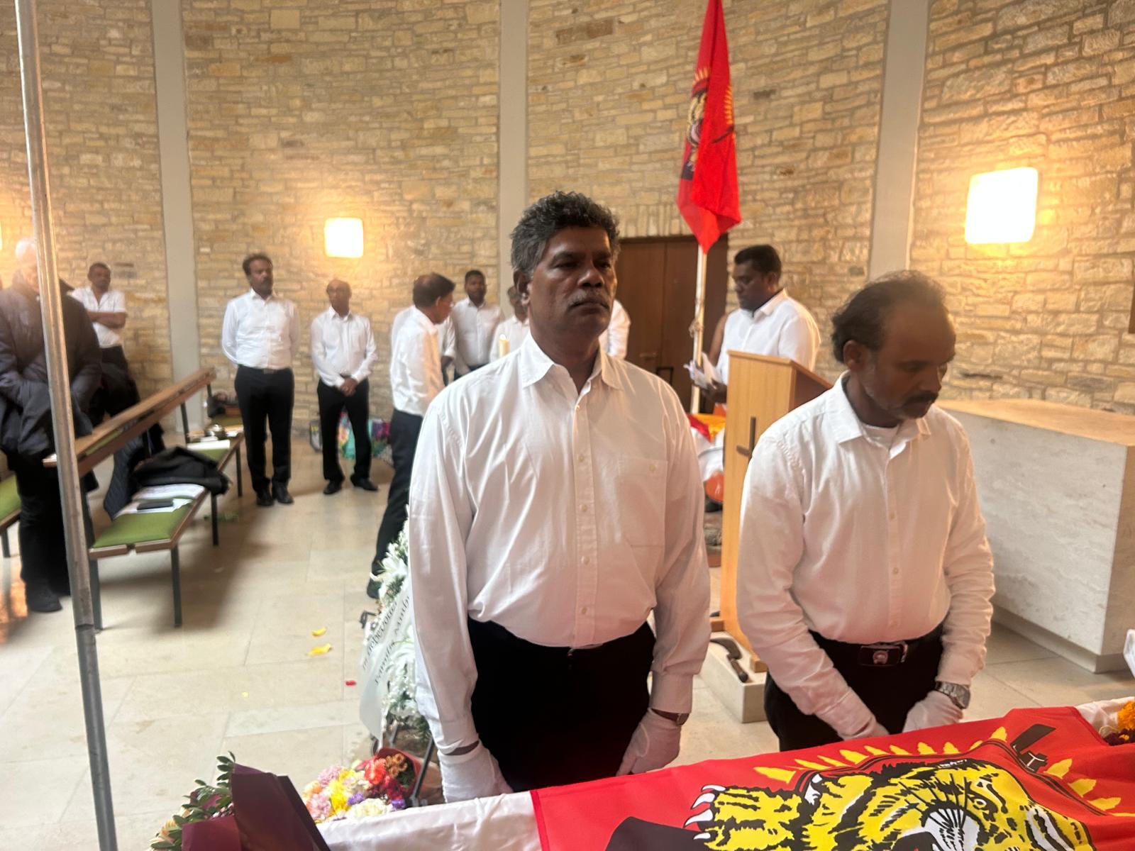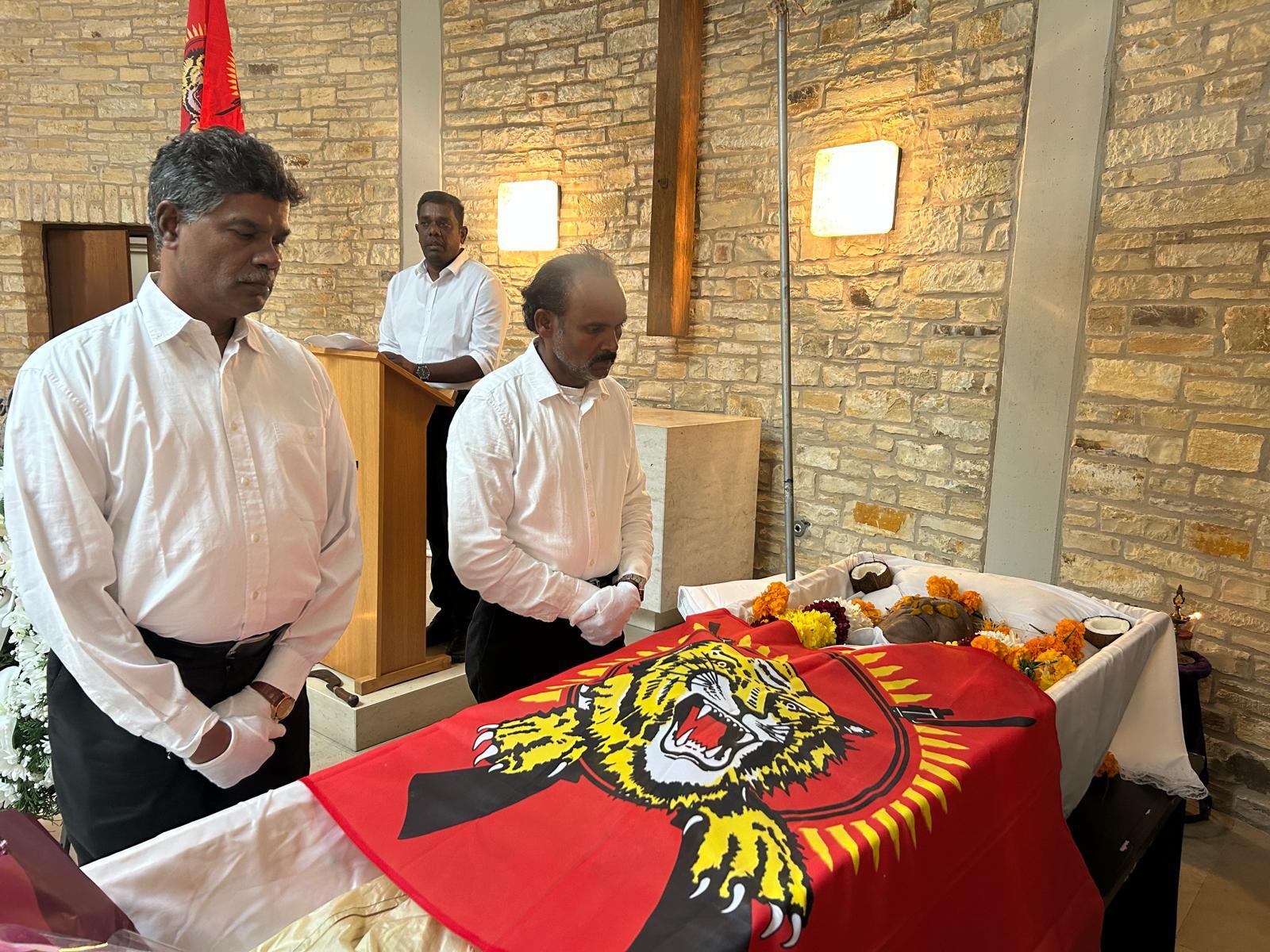 அவரது வித்துடல் வைக்கப்பட்ட மண்டபத்திலே ஈகைச்சுடரினை அவரது துணைவியார் ஏற்றிவைக்க, தமிழீழ தேசியக் கொடியினை யேர்மனிய தமிழர் ஒருங்கிணைப்புக் குழுவின் பொறுப்பாளர் ஏற்றி, அரைக்கம்பத்திலே பறக்க விடப்பட்டது. ஈகைச்சுடரினை நாட்டுப்பற்றாளரின் புதல்வன் ஏற்றிவைத்தார். செயற்பாட்டாளர்களால் கையேந்தி வரப்பட்ட தமிழீழ தேசியக் கொடி அவரது வித்துடல்மீது போர்த்தப்பட்டு அகவணக்கம் செலுத்தப்பட்டது.