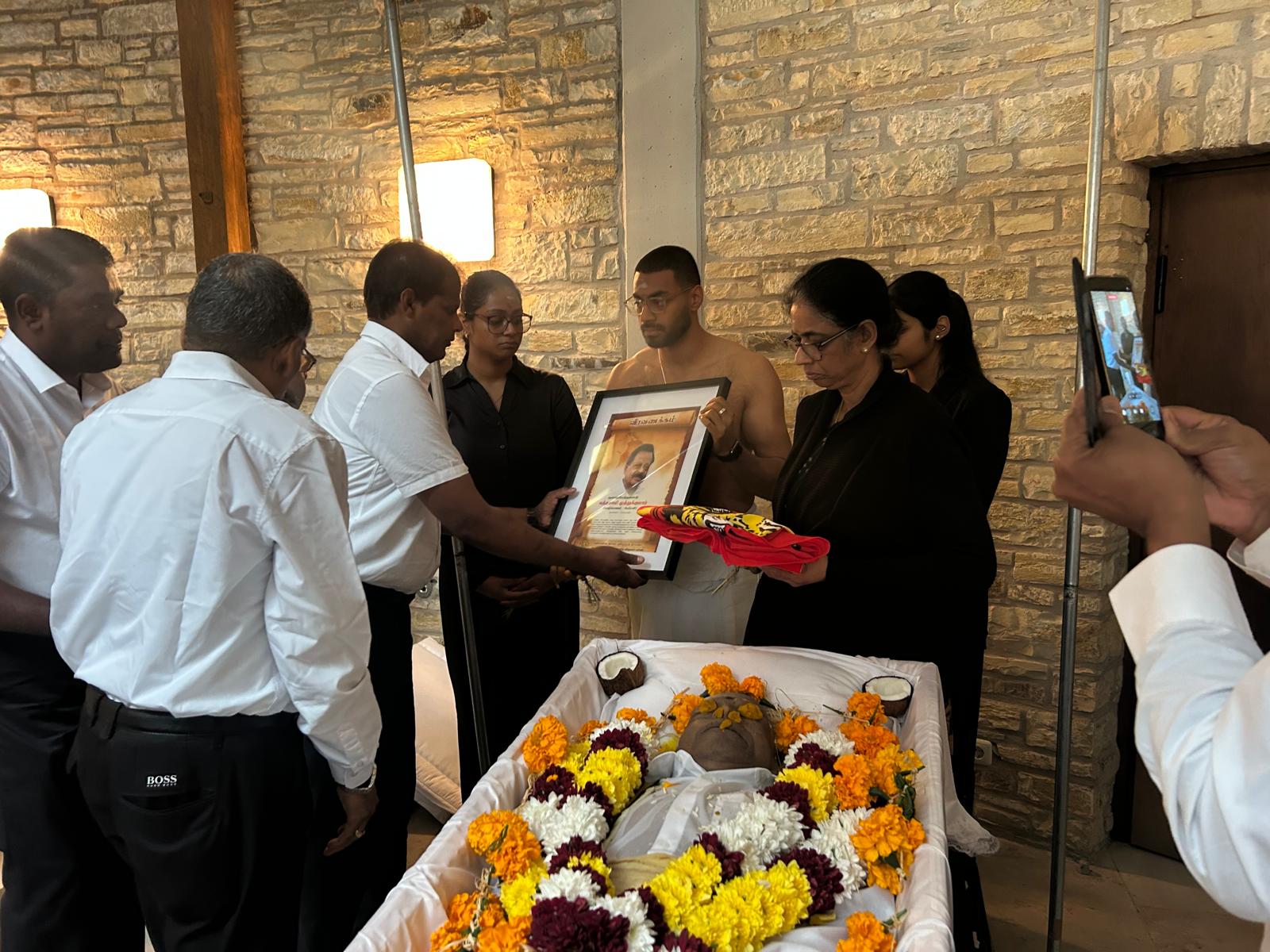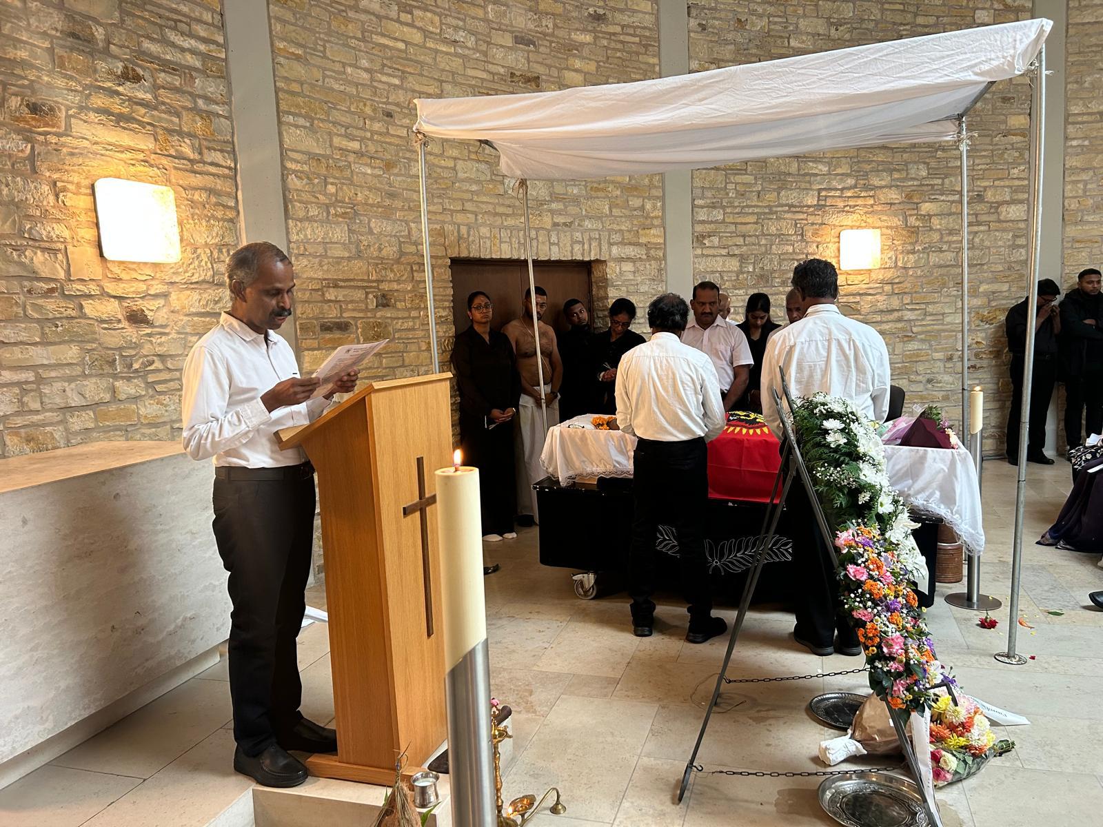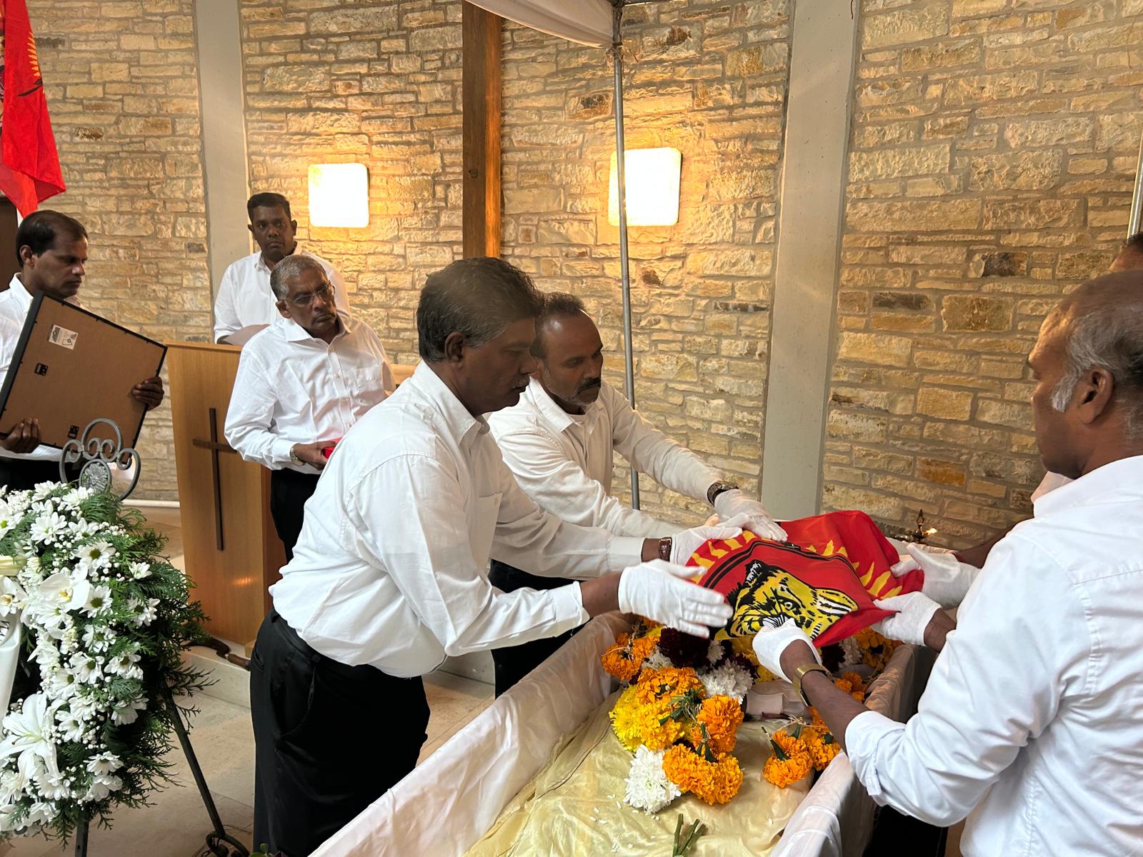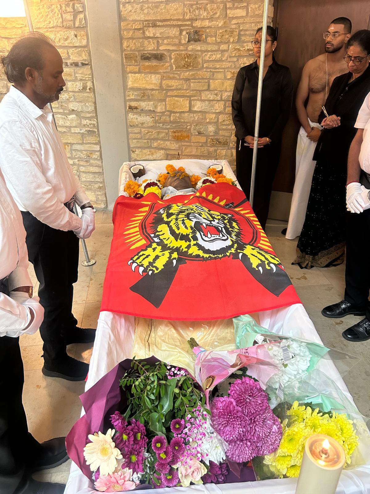 அவரது வித்துடல் வைக்கப்பட்ட மண்டபத்திலே ஈகைச்சுடரினை அவரது துணைவியார் ஏற்றிவைக்க, தமிழீழ தேசியக் கொடியினை யேர்மனிய தமிழர் ஒருங்கிணைப்புக் குழுவின் பொறுப்பாளர் ஏற்றி, அரைக்கம்பத்திலே பறக்க விடப்பட்டது. ஈகைச்சுடரினை நாட்டுப்பற்றாளரின் புதல்வன் ஏற்றிவைத்தார். செயற்பாட்டாளர்களால் கையேந்தி வரப்பட்ட தமிழீழ தேசியக் கொடி அவரது வித்துடல்மீது போர்த்தப்பட்டு அகவணக்கம் செலுத்தப்பட்டது.
