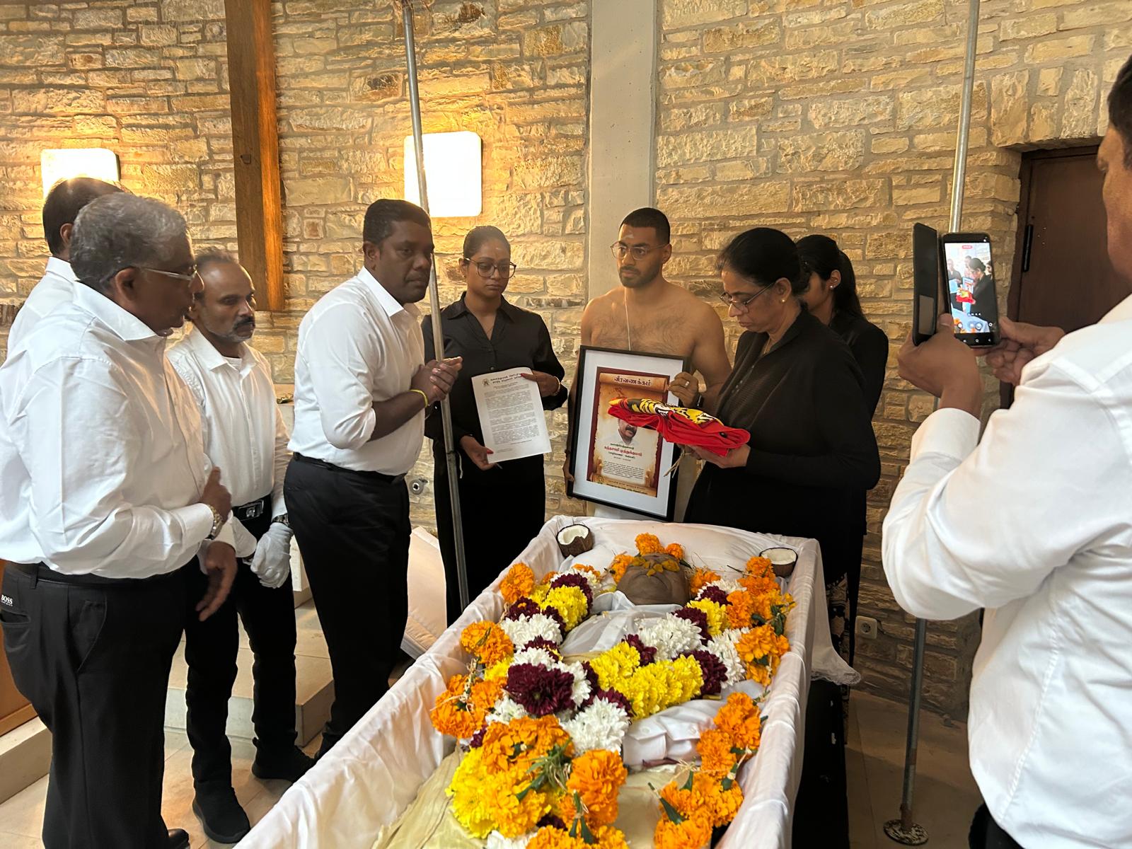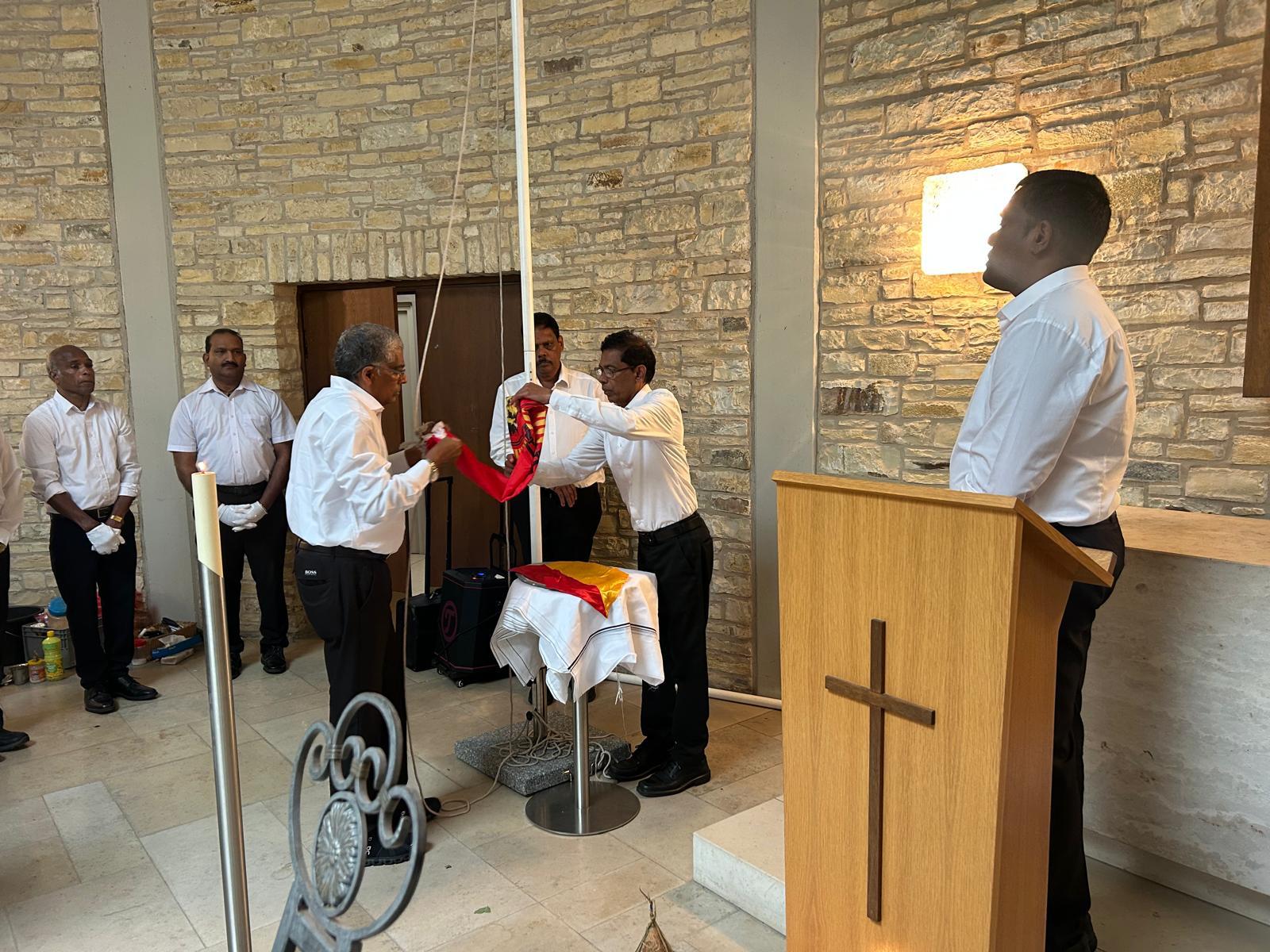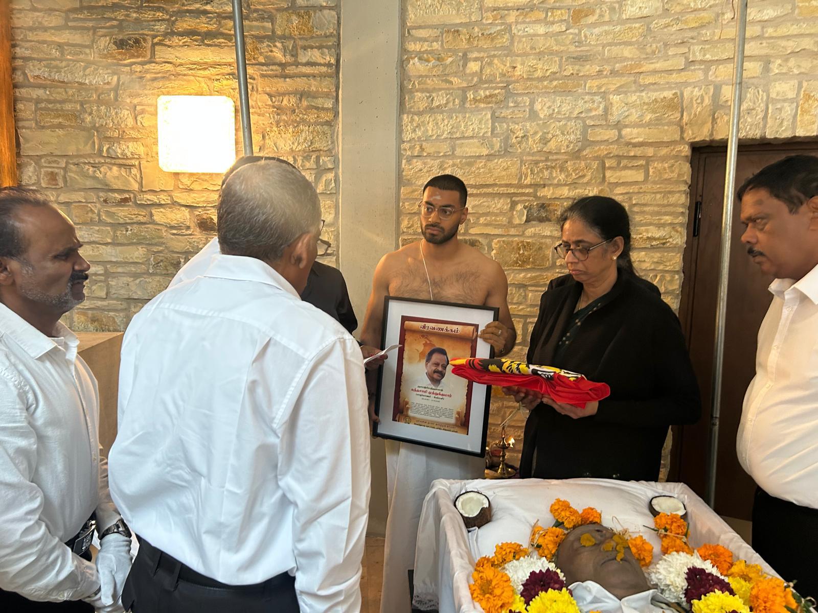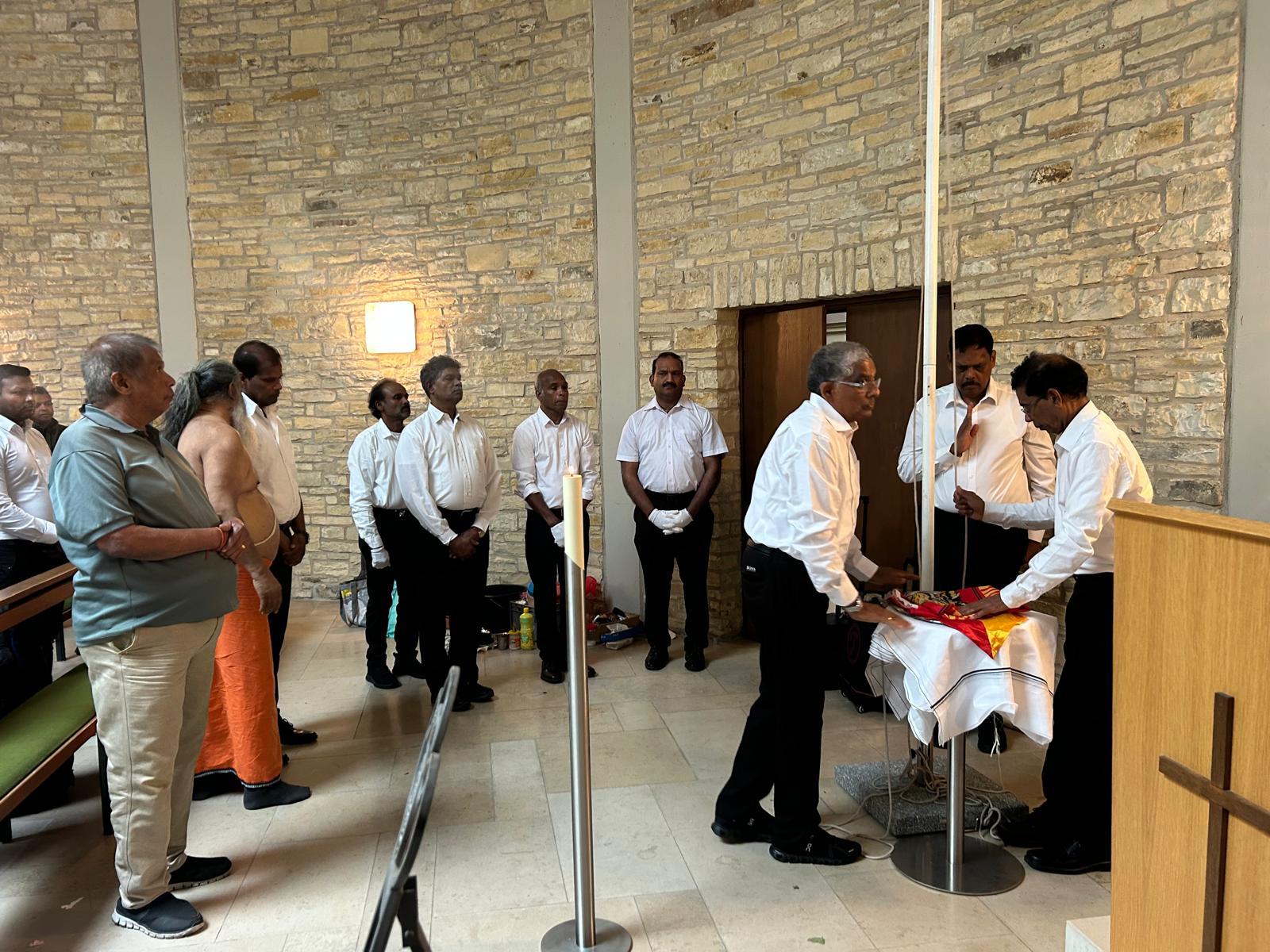 அவரது வித்துடல் வைக்கப்பட்ட மண்டபத்திலே ஈகைச்சுடரினை அவரது துணைவியார் ஏற்றிவைக்க, தமிழீழ தேசியக் கொடியினை யேர்மனிய தமிழர் ஒருங்கிணைப்புக் குழுவின் பொறுப்பாளர் ஏற்றி, அரைக்கம்பத்திலே பறக்க விடப்பட்டது. ஈகைச்சுடரினை நாட்டுப்பற்றாளரின் புதல்வன் ஏற்றிவைத்தார். செயற்பாட்டாளர்களால் கையேந்தி வரப்பட்ட தமிழீழ தேசியக் கொடி அவரது வித்துடல்மீது போர்த்தப்பட்டு அகவணக்கம் செலுத்தப்பட்டது.