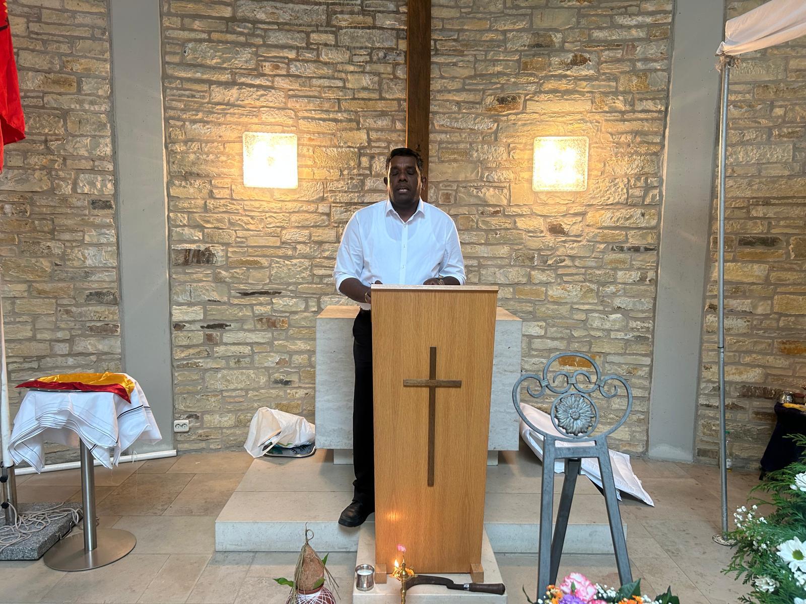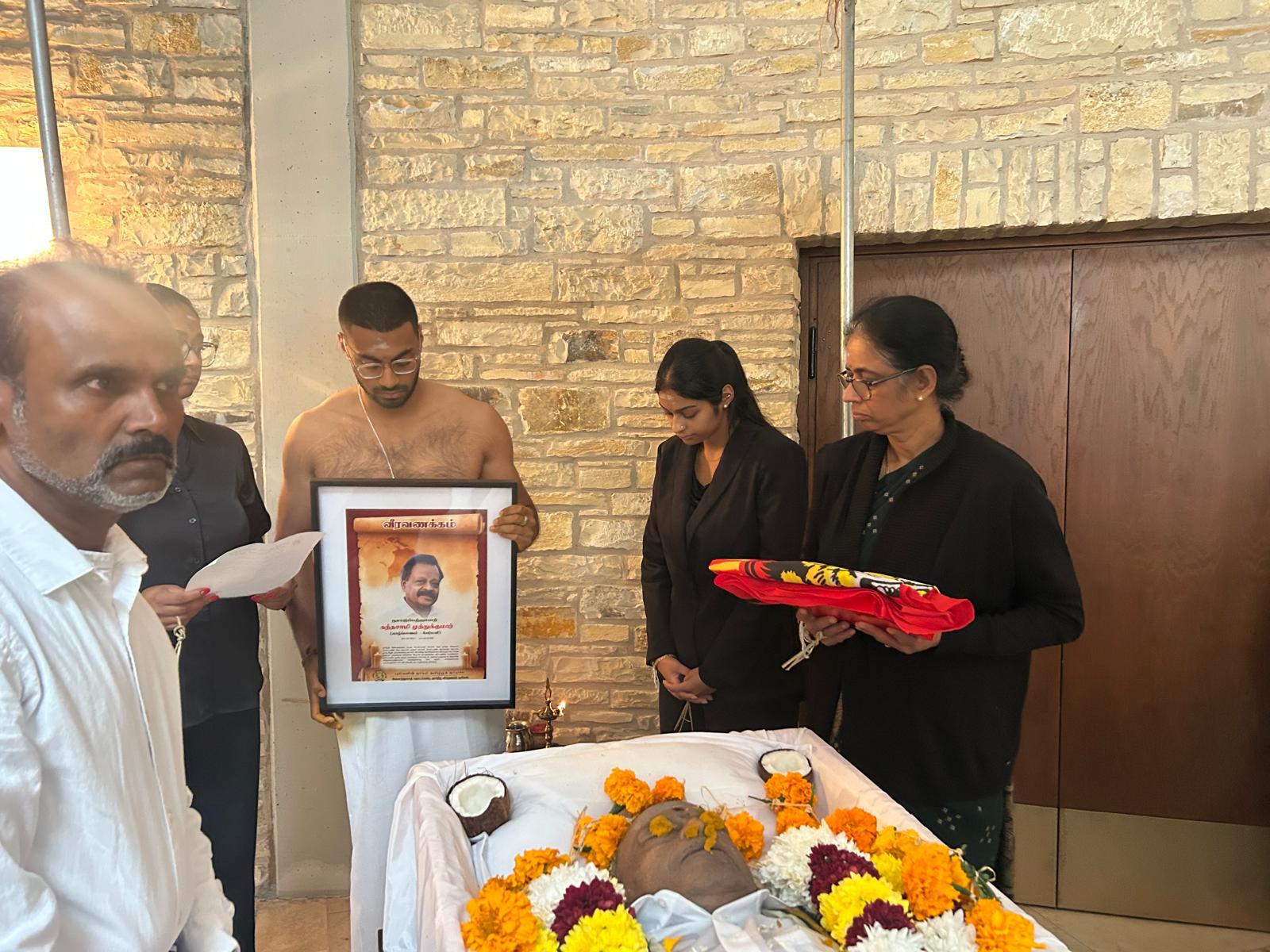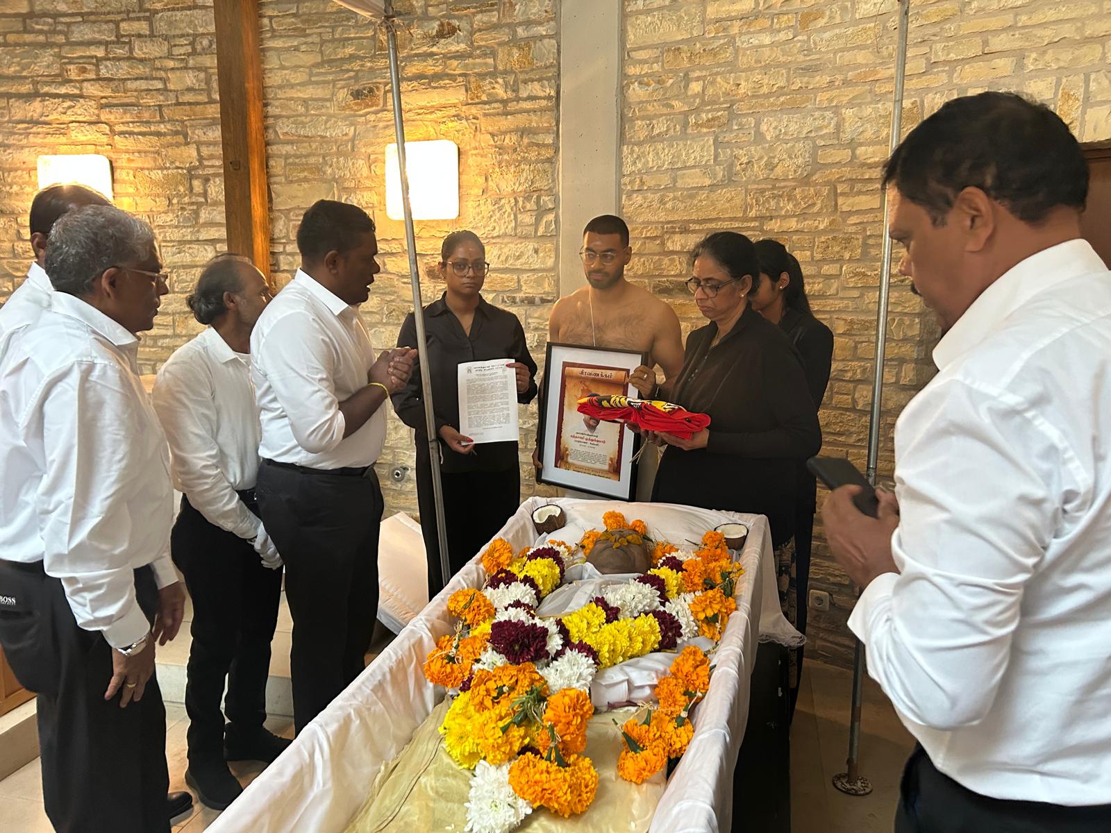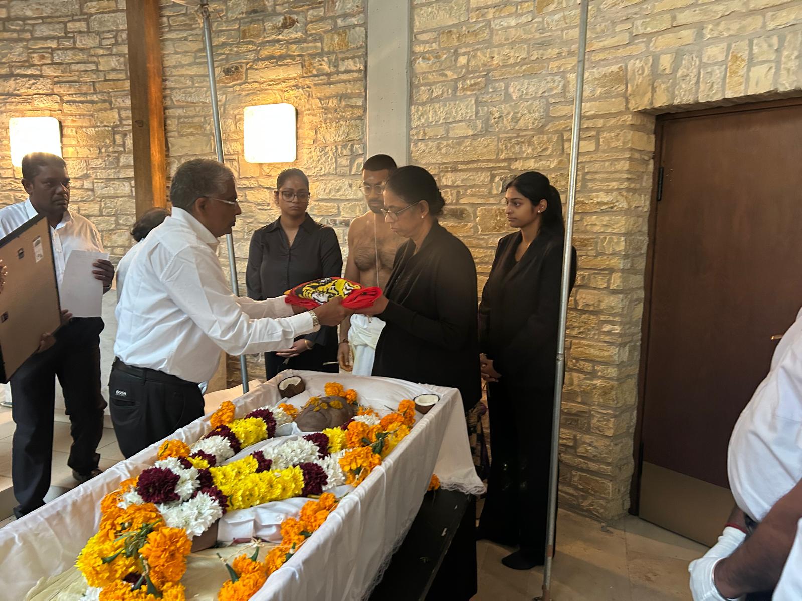 அவரது வித்துடல் வைக்கப்பட்ட மண்டபத்திலே ஈகைச்சுடரினை அவரது துணைவியார் ஏற்றிவைக்க, தமிழீழ தேசியக் கொடியினை யேர்மனிய தமிழர் ஒருங்கிணைப்புக் குழுவின் பொறுப்பாளர் ஏற்றி, அரைக்கம்பத்திலே பறக்க விடப்பட்டது. ஈகைச்சுடரினை நாட்டுப்பற்றாளரின் புதல்வன் ஏற்றிவைத்தார். செயற்பாட்டாளர்களால் கையேந்தி வரப்பட்ட தமிழீழ தேசியக் கொடி அவரது வித்துடல்மீது போர்த்தப்பட்டு அகவணக்கம் செலுத்தப்பட்டது.
