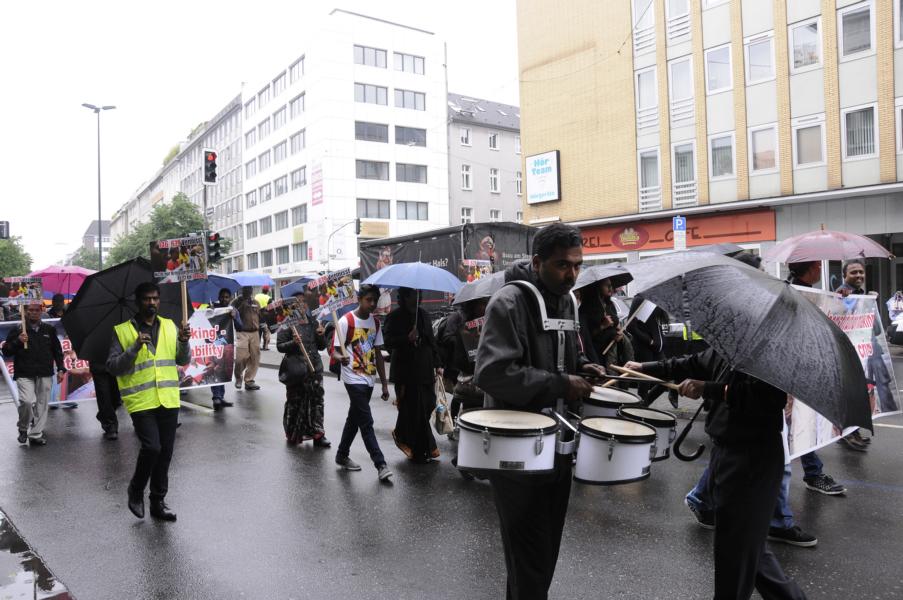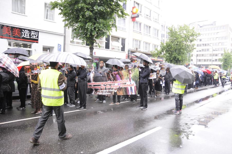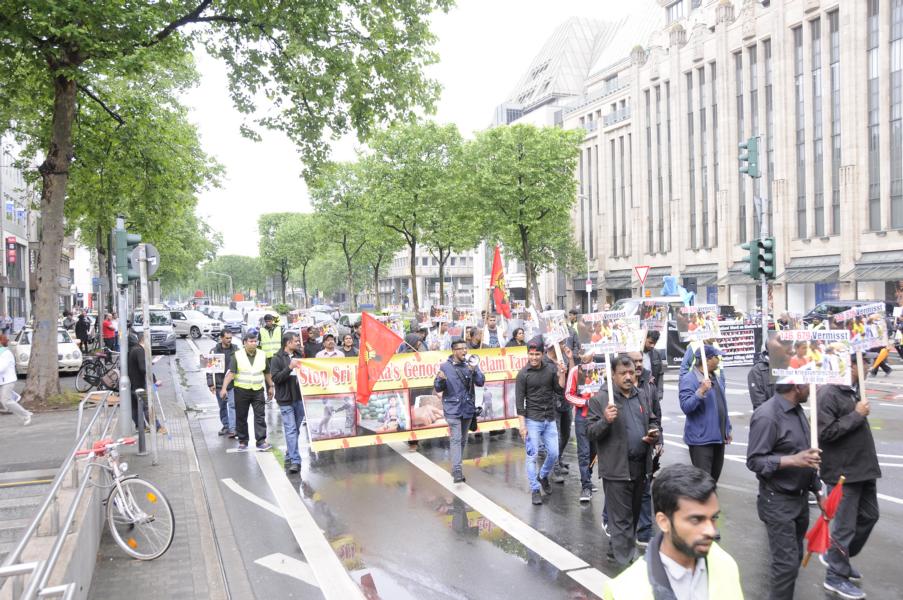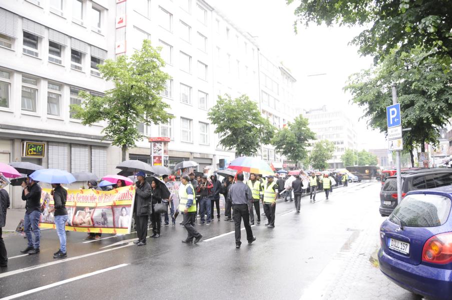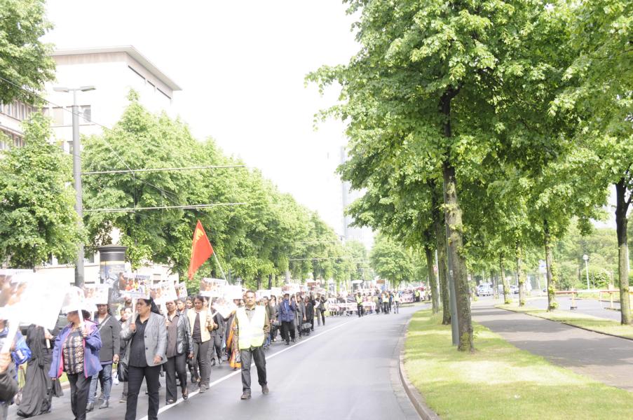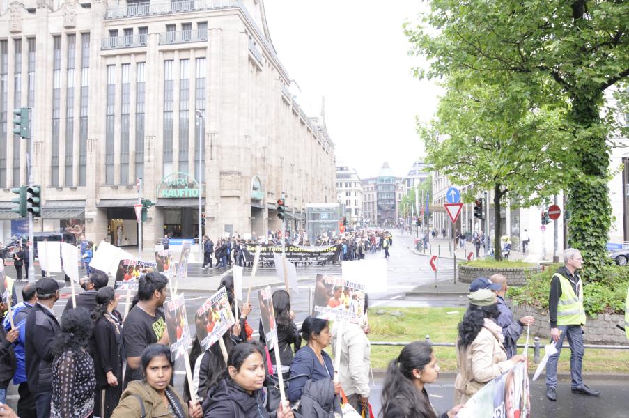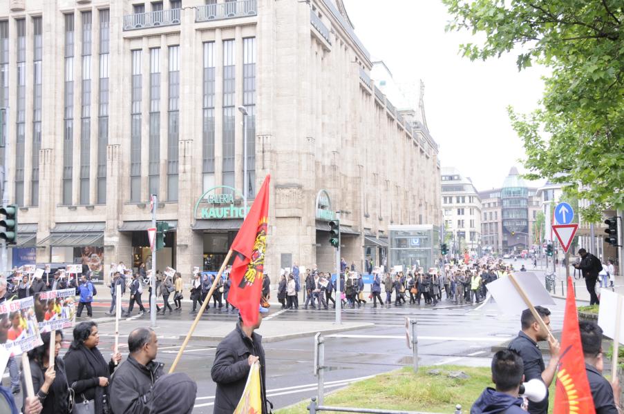 கொட்டும் மழையையும் பொருட்படுத்தாமல் யேர்மனியின் அனைத்து நகரங்களிலும் இருந்து டுசில்டோர்ப் நகரத்திற்கு அணிதிரண்டிருந்த தமிழீழ மக்கள் டுசில்டோர்ப் புகையிரத நிலயத்திற்கு முன்பாக அணிதிரண்டு அங்கிருந்து அந்த மாநிலத்தின் பாராளுமன்றம் இருக்கும் இடத்தை நோக்கி ஊர்வலமாகச் சென்றனர்.