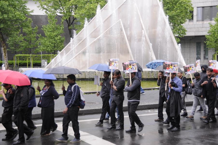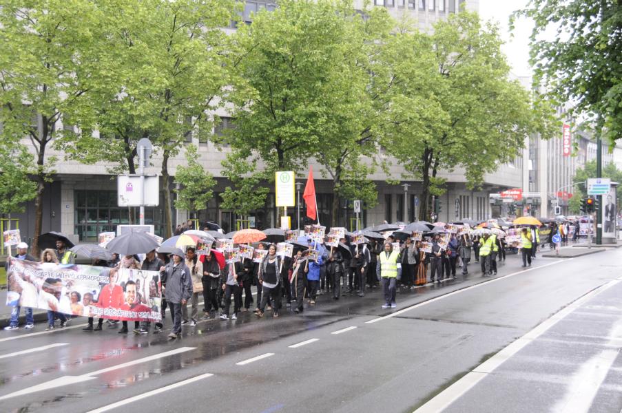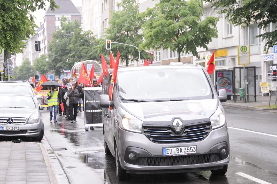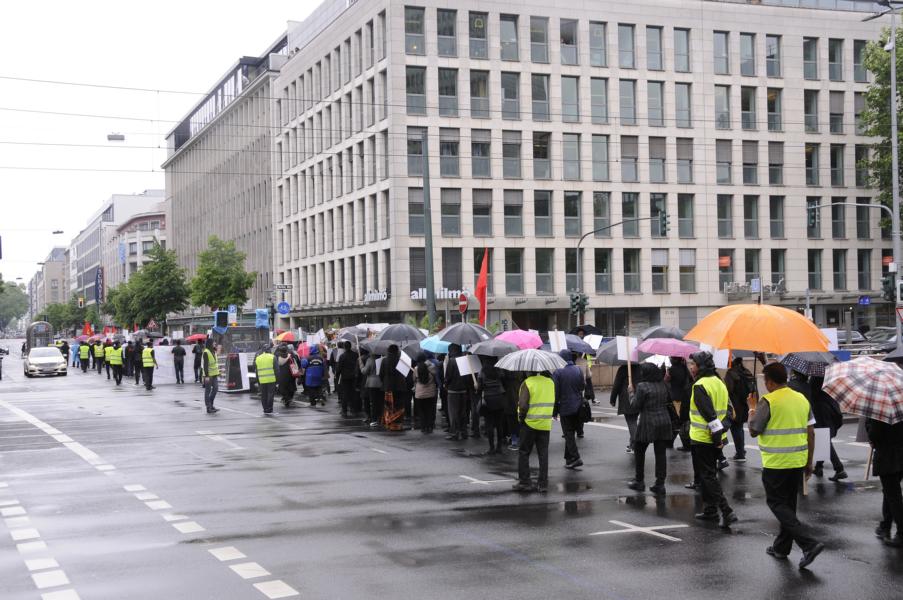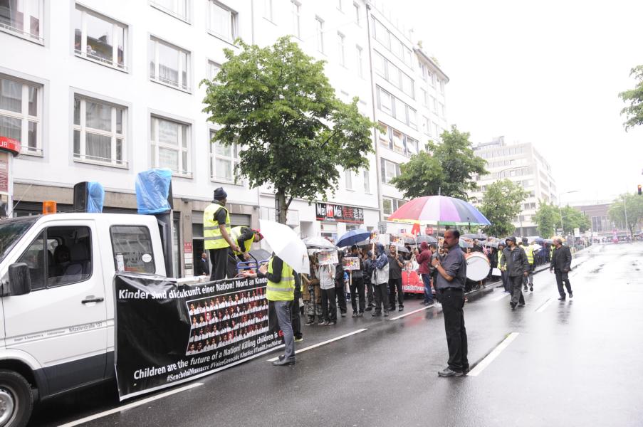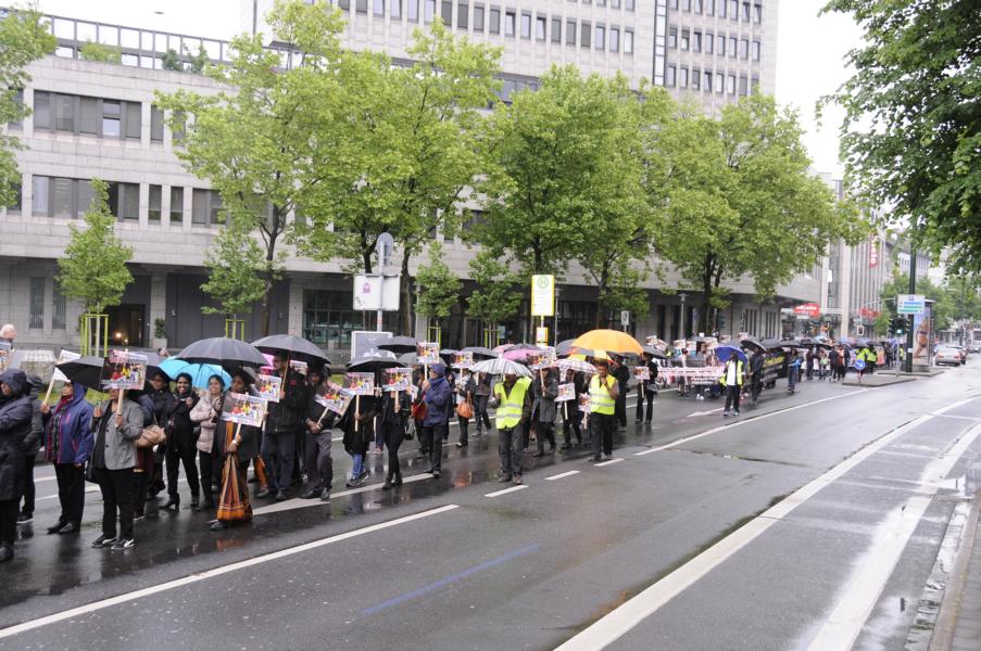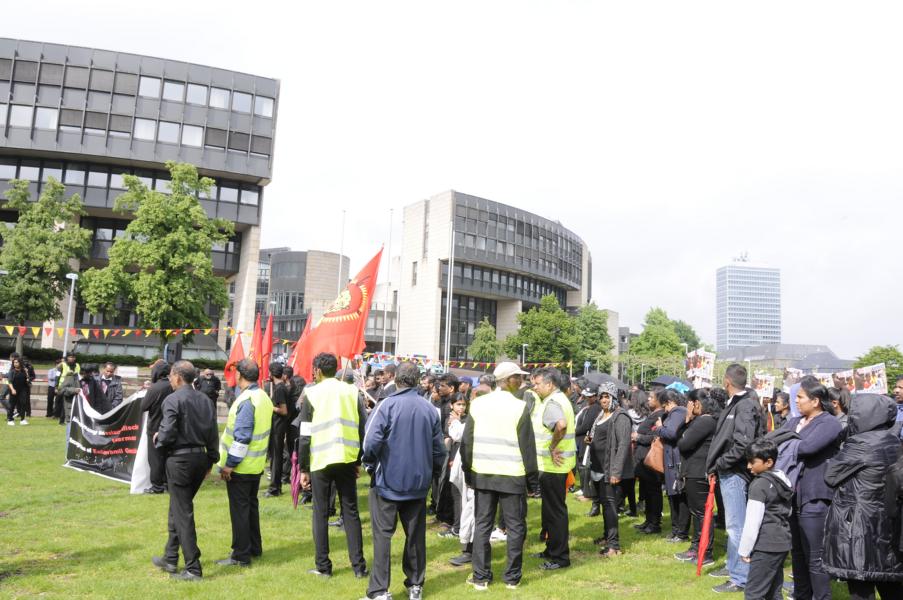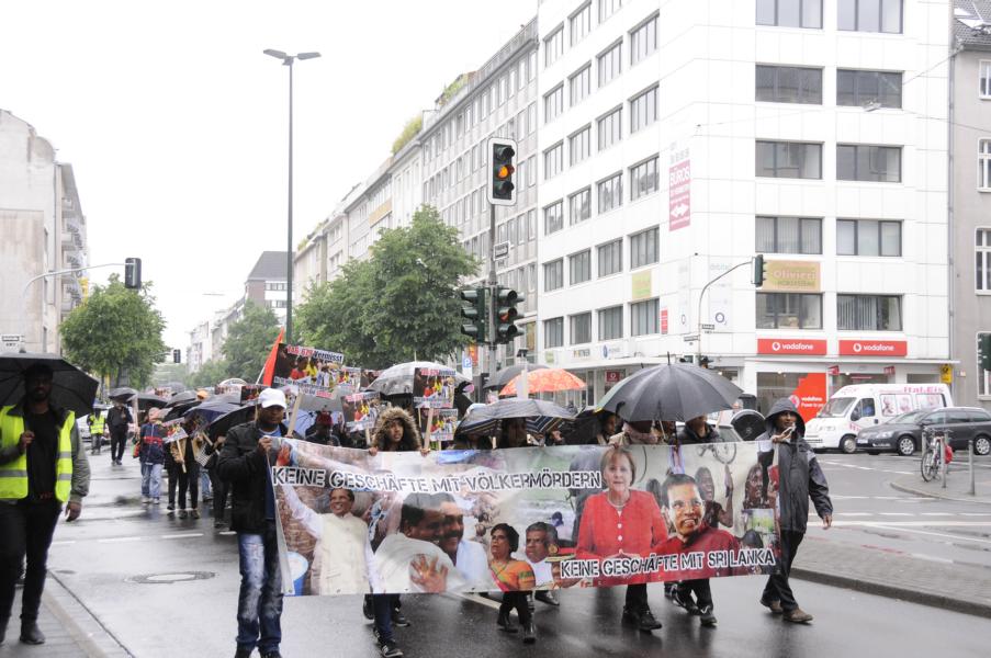 கொட்டும் மழையையும் பொருட்படுத்தாமல் யேர்மனியின் அனைத்து நகரங்களிலும் இருந்து டுசில்டோர்ப் நகரத்திற்கு அணிதிரண்டிருந்த தமிழீழ மக்கள் டுசில்டோர்ப் புகையிரத நிலயத்திற்கு முன்பாக அணிதிரண்டு அங்கிருந்து அந்த மாநிலத்தின் பாராளுமன்றம் இருக்கும் இடத்தை நோக்கி ஊர்வலமாகச் சென்றனர்.