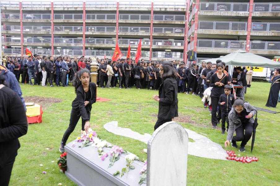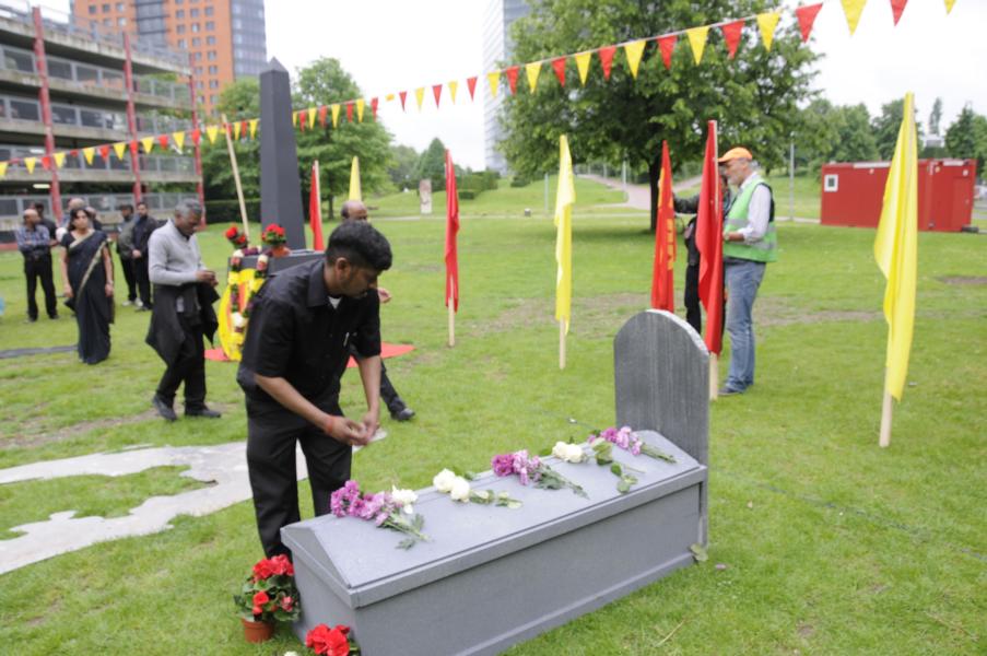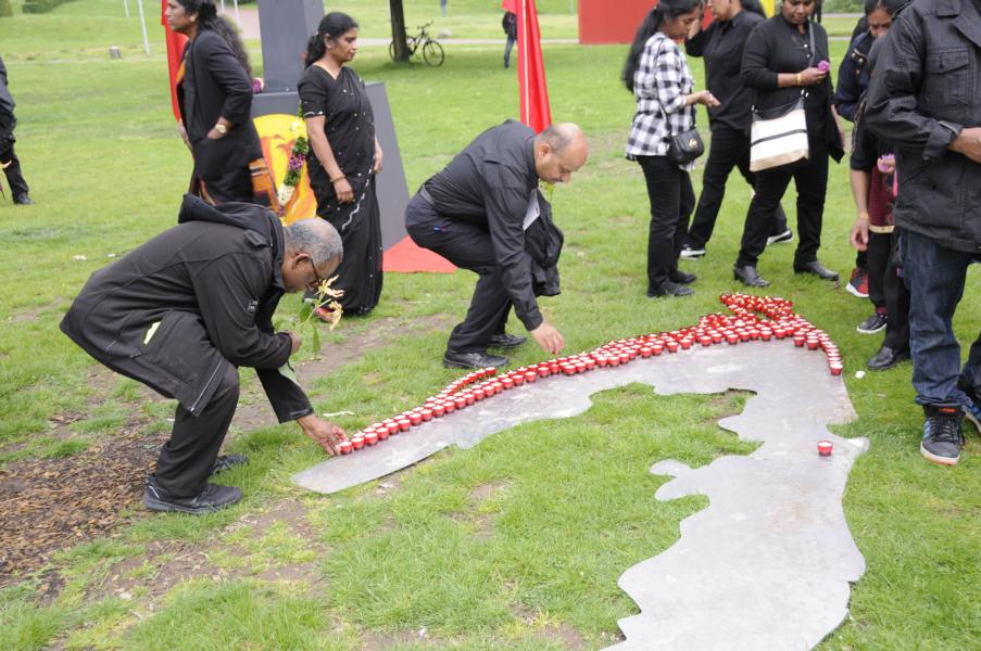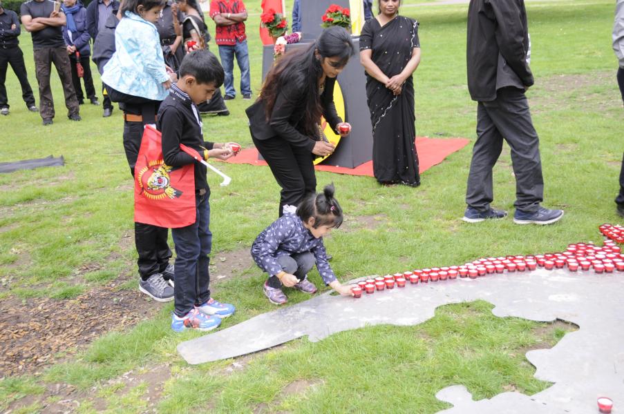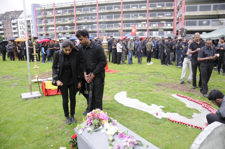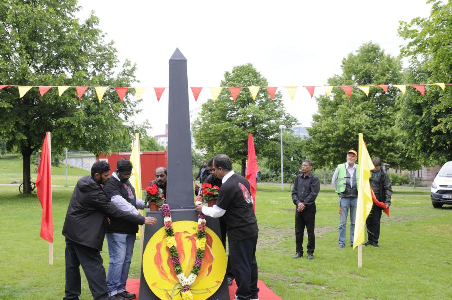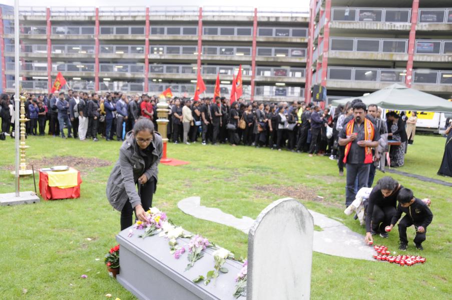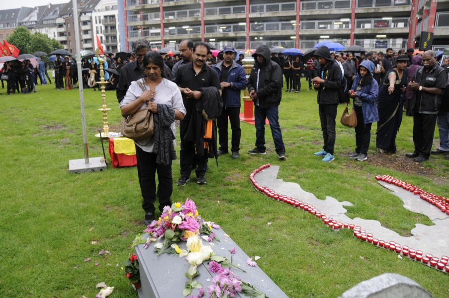 பின் பாராளுமன்றத்திற்கு முன்பாக அணிதிரண்ட மக்கள் அங்கு அமைக்கப்பட்டிருந்த உறவுகளின் கல்லறைக்கு தீபம் ஏற்றி மலர்தூவி தமது இதயவணக்கத்தைச் செலுத்தினர். ஊர்வலம் ஆரம்பிக்கப்பட்டதில் இருந்து இறுதி நிகழ்வு முடியும்வரை சீரற்ற காலநிலையால் மழைபெய்து கொண்டேயிருந்தது. மழையில் நனைந்தபடி இனப்படுகொலை செய்யப்பட்ட தமது உறவுகளுக்கு அங்கு வருகைதந்திருந்த மக்கள் உணர்வுபூர்வமாக வணக்கம் செலுத்திய விதம் யேர்மனிய மக்கள் மத்தியில் வியப்பை ஏற்படுத்திய காட்சியைப் பார்கக்கூடியதாக இருந்தது.