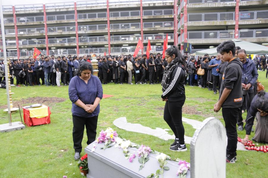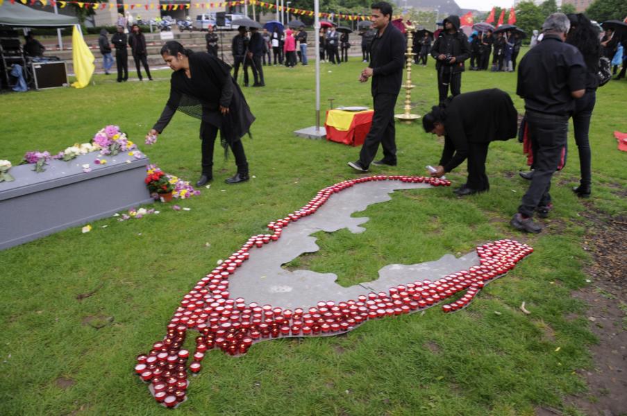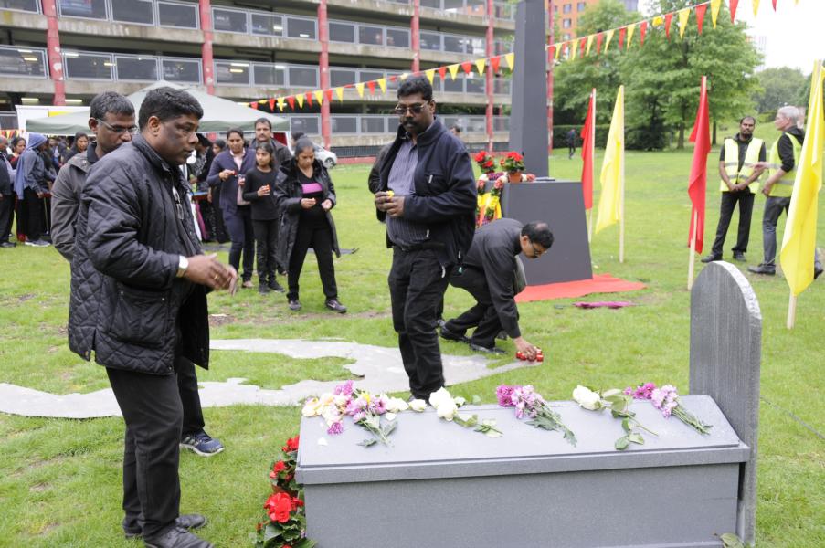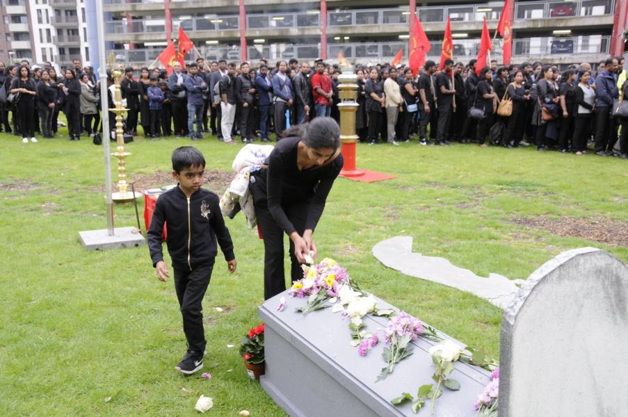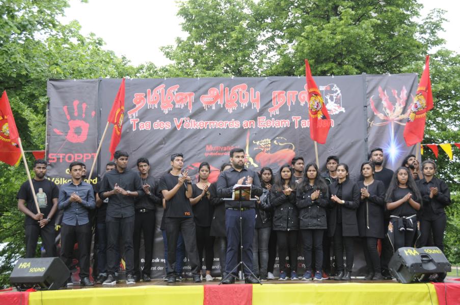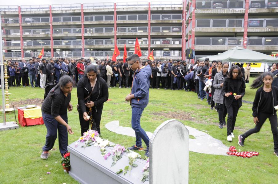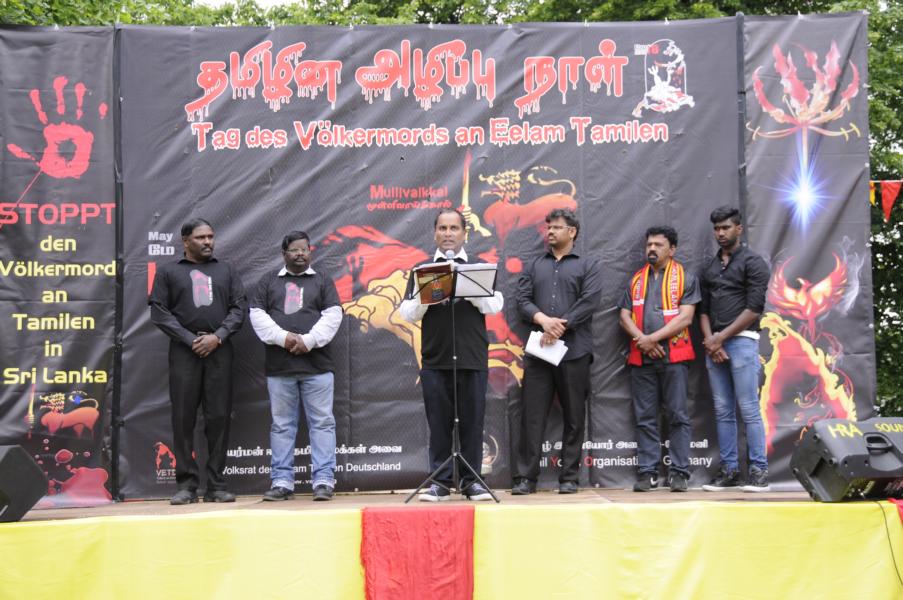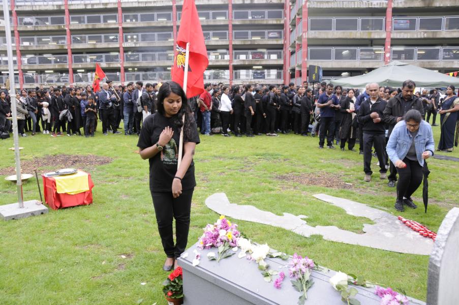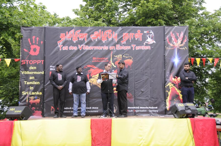 பின் பாராளுமன்றத்திற்கு முன்பாக அணிதிரண்ட மக்கள் அங்கு அமைக்கப்பட்டிருந்த உறவுகளின் கல்லறைக்கு தீபம் ஏற்றி மலர்தூவி தமது இதயவணக்கத்தைச் செலுத்தினர். ஊர்வலம் ஆரம்பிக்கப்பட்டதில் இருந்து இறுதி நிகழ்வு முடியும்வரை சீரற்ற காலநிலையால் மழைபெய்து கொண்டேயிருந்தது. மழையில் நனைந்தபடி இனப்படுகொலை செய்யப்பட்ட தமது உறவுகளுக்கு அங்கு வருகைதந்திருந்த மக்கள் உணர்வுபூர்வமாக வணக்கம் செலுத்திய விதம் யேர்மனிய மக்கள் மத்தியில் வியப்பை ஏற்படுத்திய காட்சியைப் பார்கக்கூடியதாக இருந்தது.