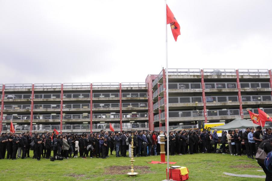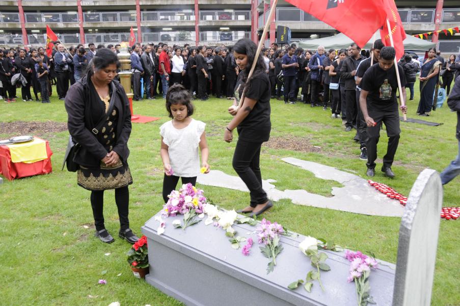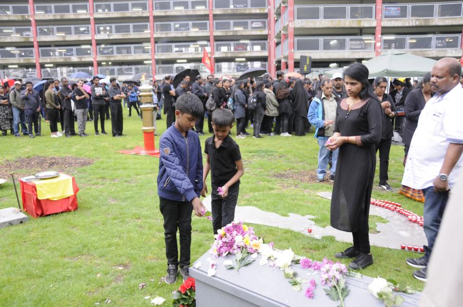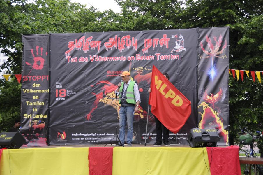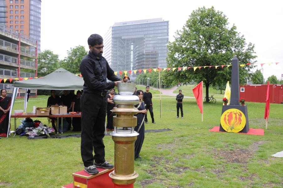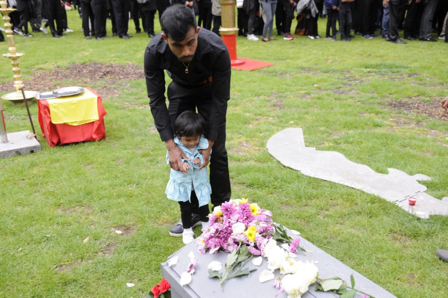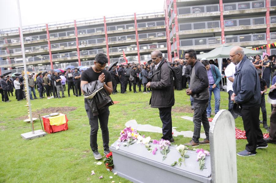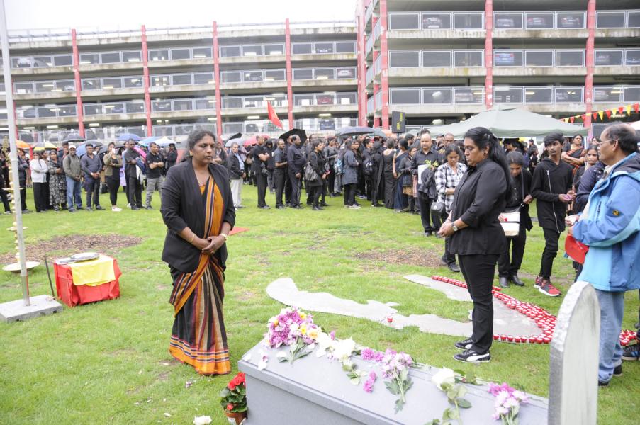 பின் பாராளுமன்றத்திற்கு முன்பாக அணிதிரண்ட மக்கள் அங்கு அமைக்கப்பட்டிருந்த உறவுகளின் கல்லறைக்கு தீபம் ஏற்றி மலர்தூவி தமது இதயவணக்கத்தைச் செலுத்தினர். ஊர்வலம் ஆரம்பிக்கப்பட்டதில் இருந்து இறுதி நிகழ்வு முடியும்வரை சீரற்ற காலநிலையால் மழைபெய்து கொண்டேயிருந்தது. மழையில் நனைந்தபடி இனப்படுகொலை செய்யப்பட்ட தமது உறவுகளுக்கு அங்கு வருகைதந்திருந்த மக்கள் உணர்வுபூர்வமாக வணக்கம் செலுத்திய விதம் யேர்மனிய மக்கள் மத்தியில் வியப்பை ஏற்படுத்திய காட்சியைப் பார்கக்கூடியதாக இருந்தது.