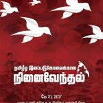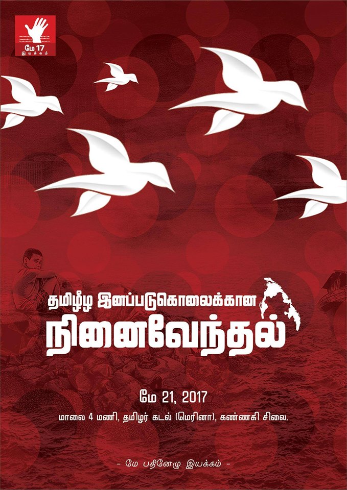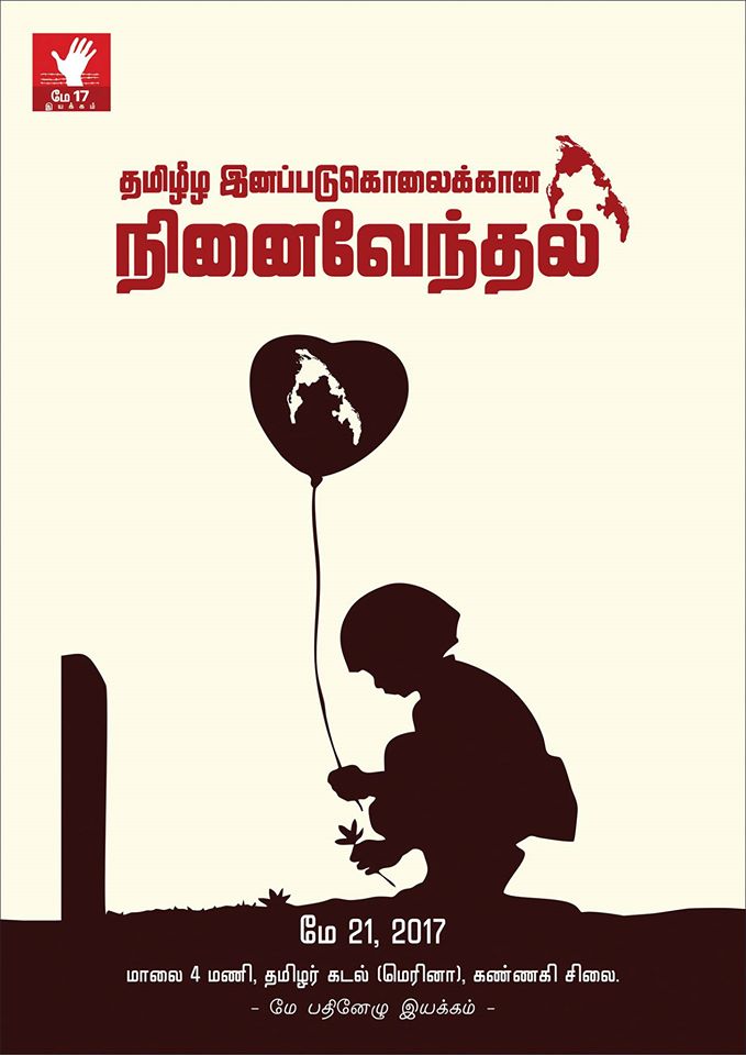 தமிழர்களின் ஓலத்தை சுமந்து கொண்டிருக்கும் தமிழர் கடலின் ஓரம் நாம் பல்லாயிரக்கணக்கான தமிழர்களாய் ஒன்று கூடி நினைவேந்துவோம். அனைவரும் வாருங்கள். தமிழீழ விடுதலையை உயர்த்திப் பிடிப்போம். தமிழீழ இனப்படுகொலைக்கு நினைவேந்த வாருங்கள். மே 21 , மாலை 4 மணி, தமிழர் கடல் (மெரீனா கடற்கரை), கண்ணகி சிலை பின்புறம்.