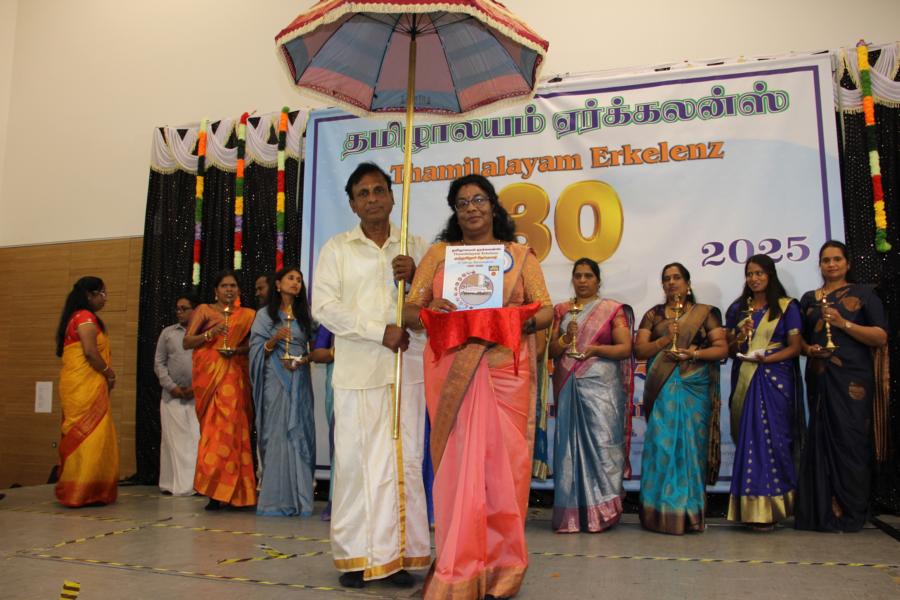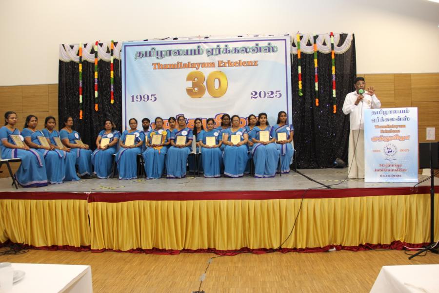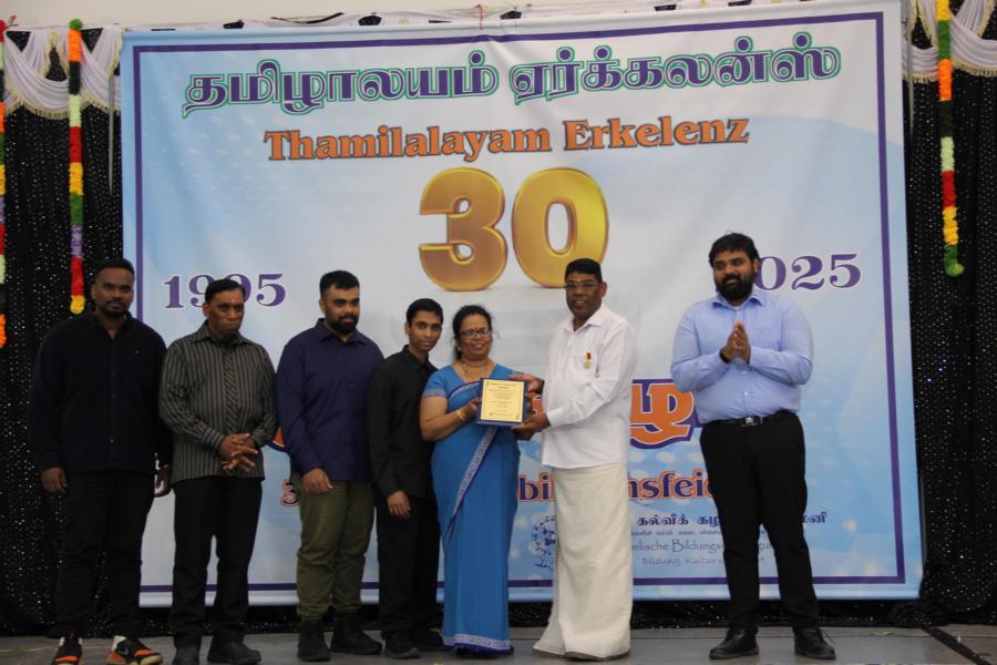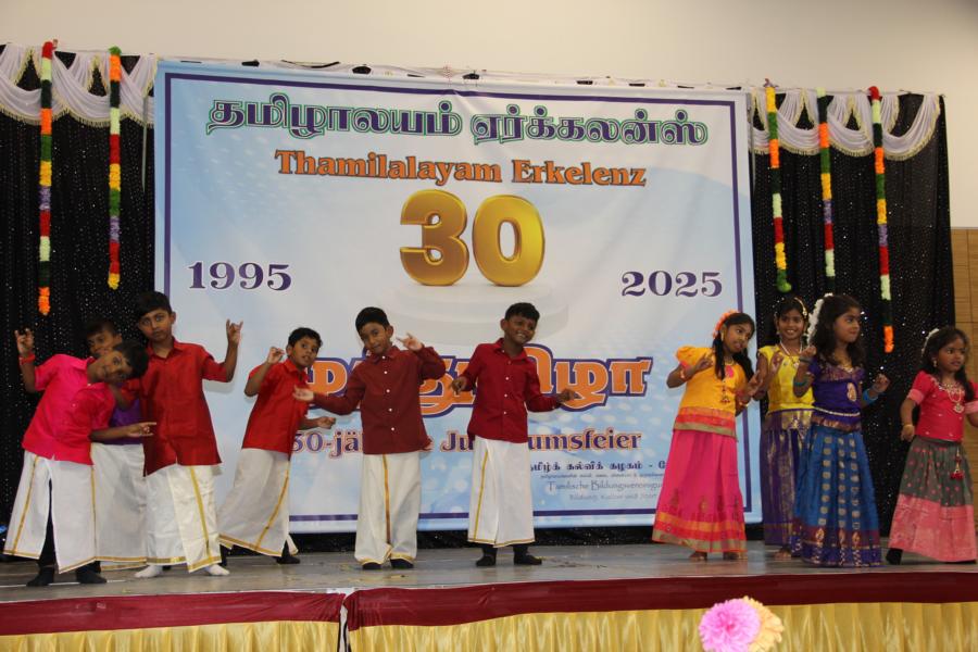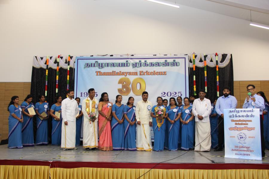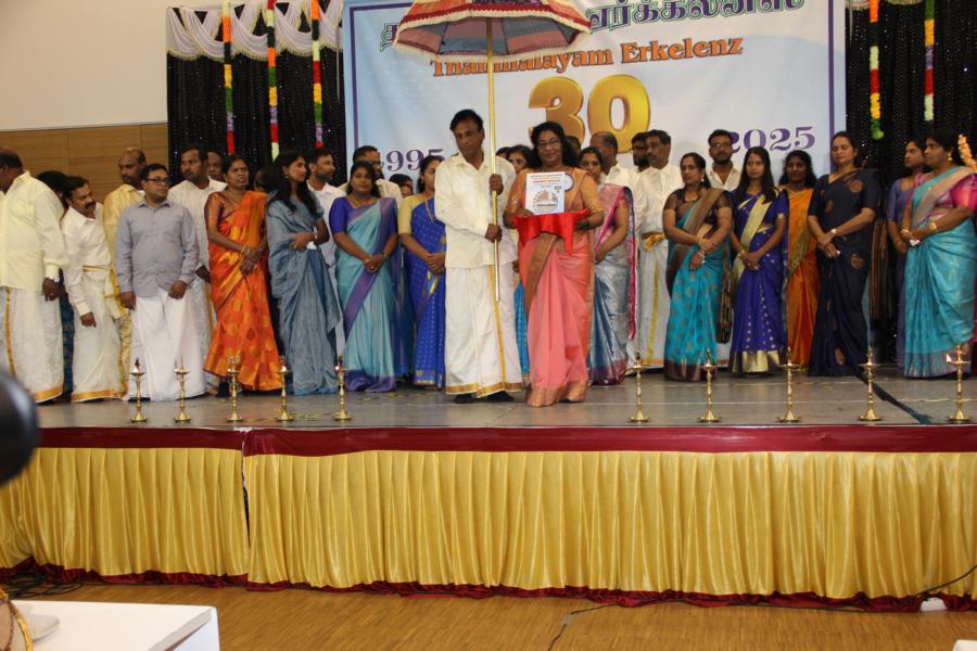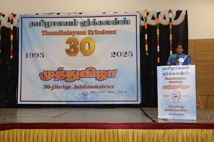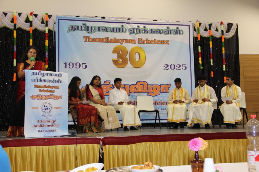 ஏர்க்கலன்ஸ் தமிழாலயத்தின் 30ஆவது அகவை நிறைவு விழா கடந்த 04.10.2025 சனிக்கிழமை 15:00மணிக்கு நிலமீட்பிற்கும் தாய்மொழி, கலை மற்றும் பண்பாட்டின் வாழ்விற்கும் ஆகுதியானோரை நினைவேந்திப் பொதுச்சுடரேற்றலோடு தொடங்கிய விழாவில் பொதுச்சுடரினைத் தமிழர் ஒருங்கிணைப்புக் குழுவின் யேர்மனியக் கிளைப் பொறுப்பாளர் திரு. யோன்பிள்ளை சிறிரவீந்திரநாதன் அவர்கள் ஏற்றி வைத்தார். புதிய கல்வியாண்டில் இணைந்துள்ள மூன்றாந் தலைமுறைக் குழந்தையரையும் சிறப்பு விருந்தினர்களையும் தமிழினத்தின் பண்பாட்டிற்கிசைவாக வரவேற்றனர்.