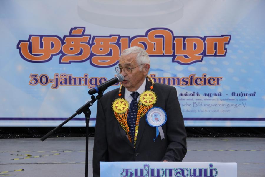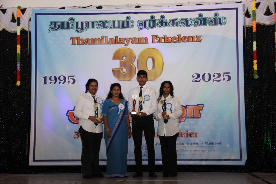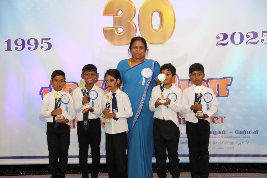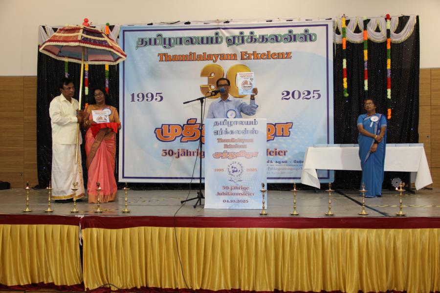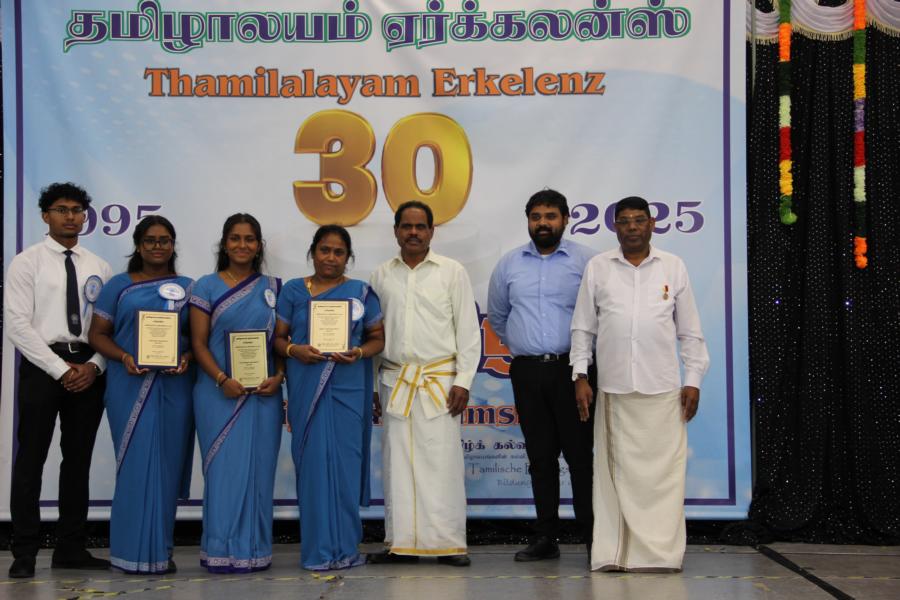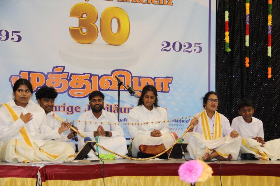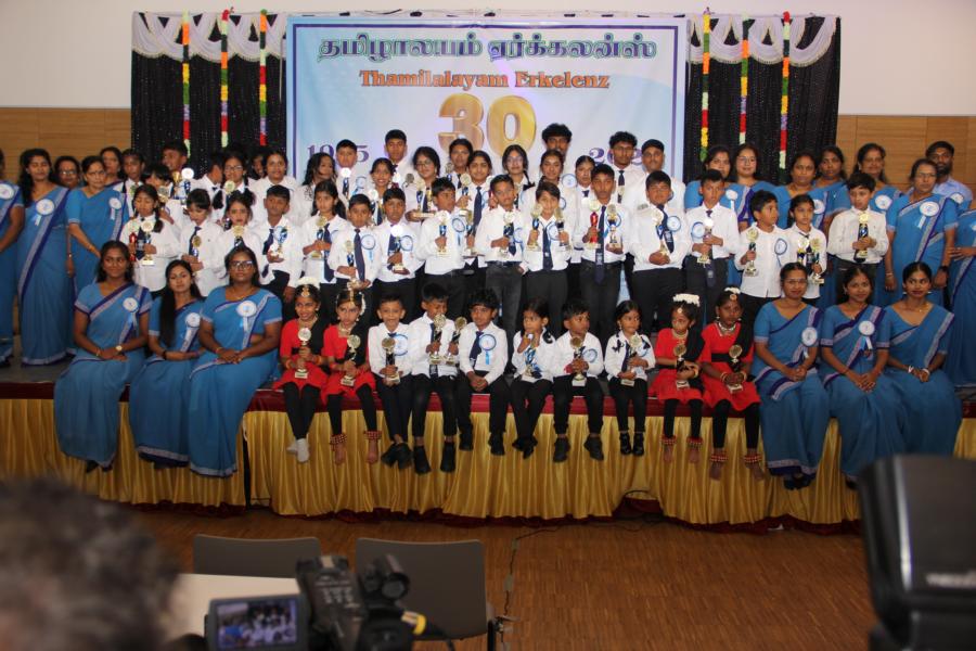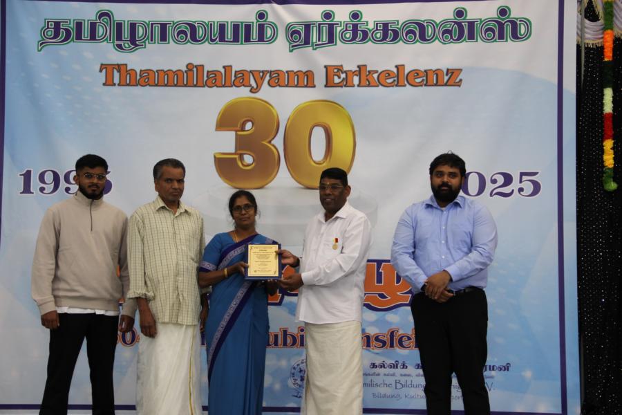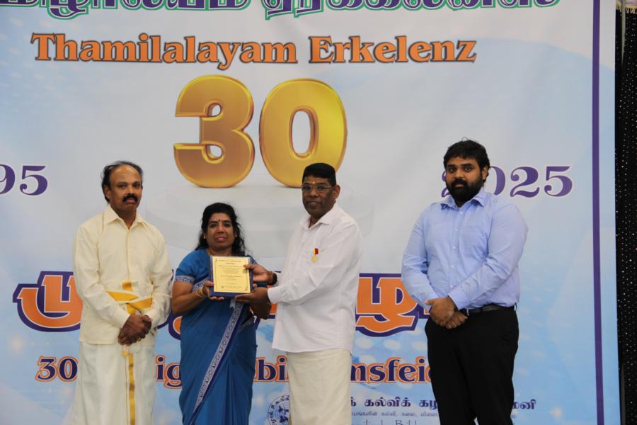 ஏர்க்கலன்ஸ் தமிழாலயத்தின் 30ஆவது அகவை நிறைவு விழா கடந்த 04.10.2025 சனிக்கிழமை 15:00மணிக்கு நிலமீட்பிற்கும் தாய்மொழி, கலை மற்றும் பண்பாட்டின் வாழ்விற்கும் ஆகுதியானோரை நினைவேந்திப் பொதுச்சுடரேற்றலோடு தொடங்கிய விழாவில் பொதுச்சுடரினைத் தமிழர் ஒருங்கிணைப்புக் குழுவின் யேர்மனியக் கிளைப் பொறுப்பாளர் திரு. யோன்பிள்ளை சிறிரவீந்திரநாதன் அவர்கள் ஏற்றி வைத்தார். புதிய கல்வியாண்டில் இணைந்துள்ள மூன்றாந் தலைமுறைக் குழந்தையரையும் சிறப்பு விருந்தினர்களையும் தமிழினத்தின் பண்பாட்டிற்கிசைவாக வரவேற்றனர்.