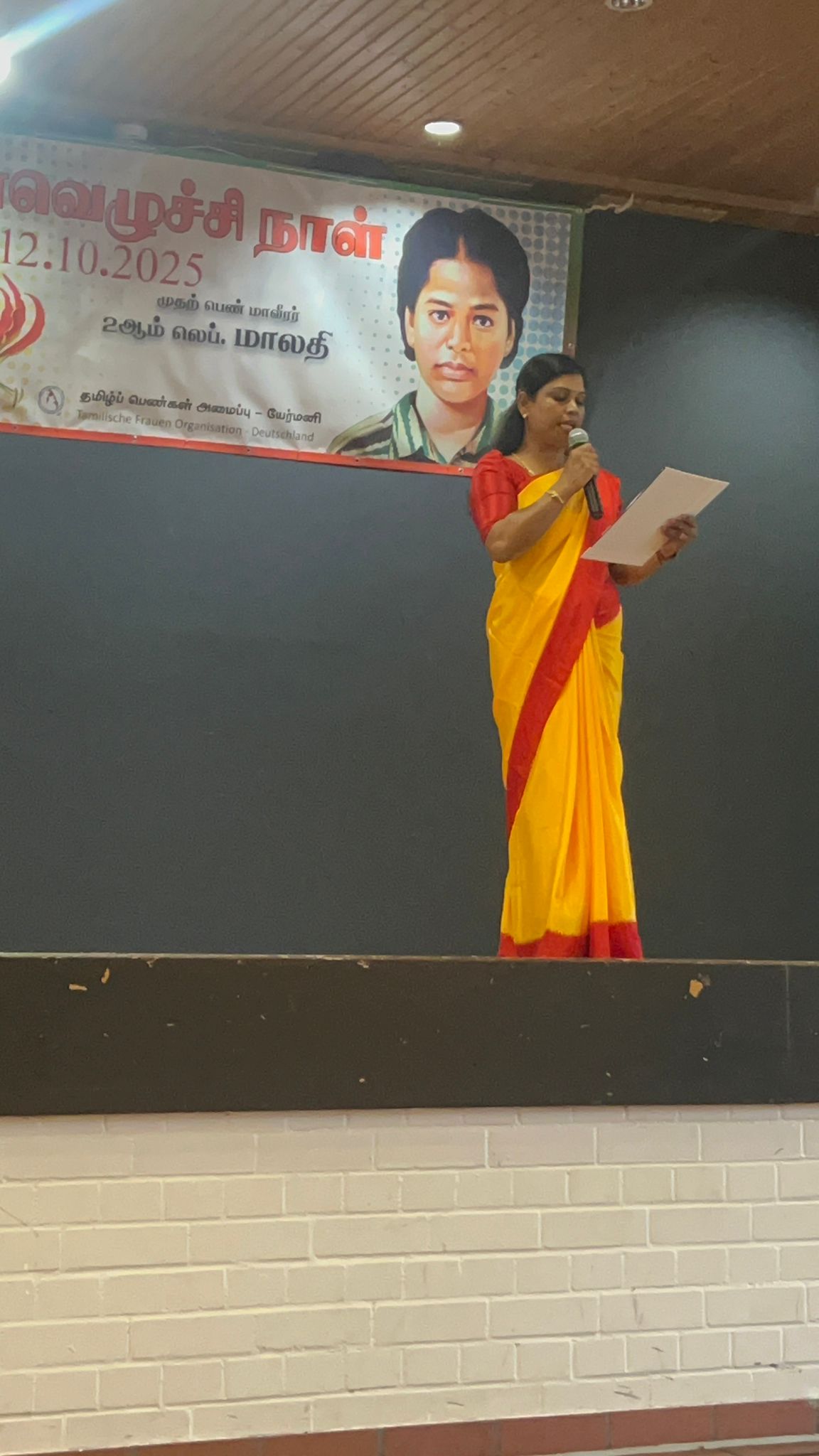 முதற்பெண் மாவீரர் 2ம். லெப். மாலதியின் 38வது ஆண்டு நினைவுநாளும், தமிழீழப் பெண்கள் எழுச்சி நாள் அக்டோபர் 12, 2025 அன்று டுசில்டோர்ப் நகரத்தில் உணர்வெழுச்சியுடன் நினைவுகூரப்பட்டது. முதற்பெண் மாவீரர் 2ம் லெப் மாலதி உட்பட நான்கு மாவீரர்கள் நினைவுகள் சுமந்த இவ்வெழுச்சி நிகழ்வில் நூற்றுக்கணக்கான மக்கள் கலந்து கொண்டனர்.