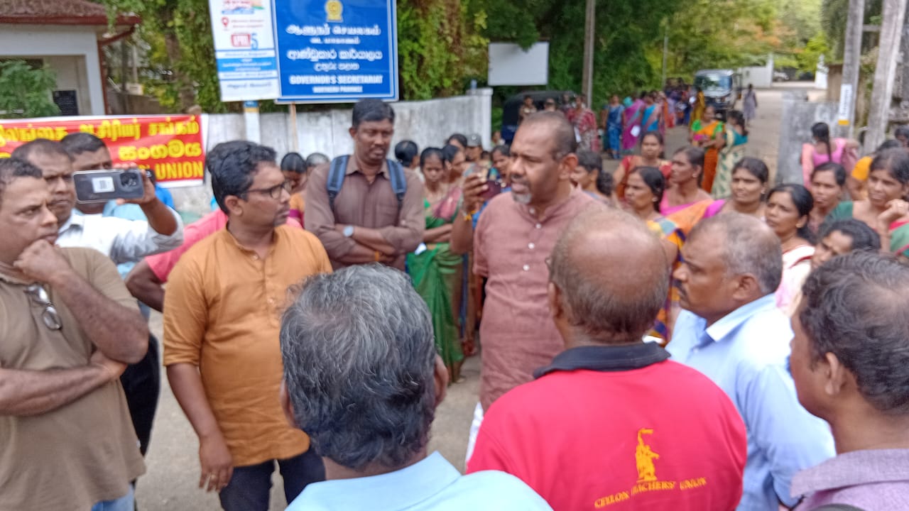 ஆசிரியர் இடமாற்ற கொள்கையை சரியான முறையில் நடைமுறைப்படுத்துமாறும், கடந்த பத்து வருடங்களுக்கு மேலாக கஷ்டப் பிரதேசம் மற்றும் அதி கஷ்டபிரதேசங்களில் பணிபுரிந்த ஆசிரியர்களுக்கான இடம் மாற்றங்கள் சரியான முறையில் வகுக்கப்படவில்லை என கூறி வடமாகாண ஆசிரியர்கள் திங்கட்கிழமை (13) முதல் வடமாகாண ஆளுநர் அலுவலகம் முன்பாக போராட்டத்தில் ஈடுபட்டு வருகின்றனர்.