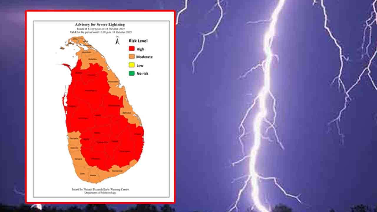 கடுமையான இடி மின்னல் தாக்கம் குறித்து எச்சரிக்கை அறிவிப்பு ஒன்றை வளிமண்டலவியல் திணைக்களம் விடுத்துள்ளது.