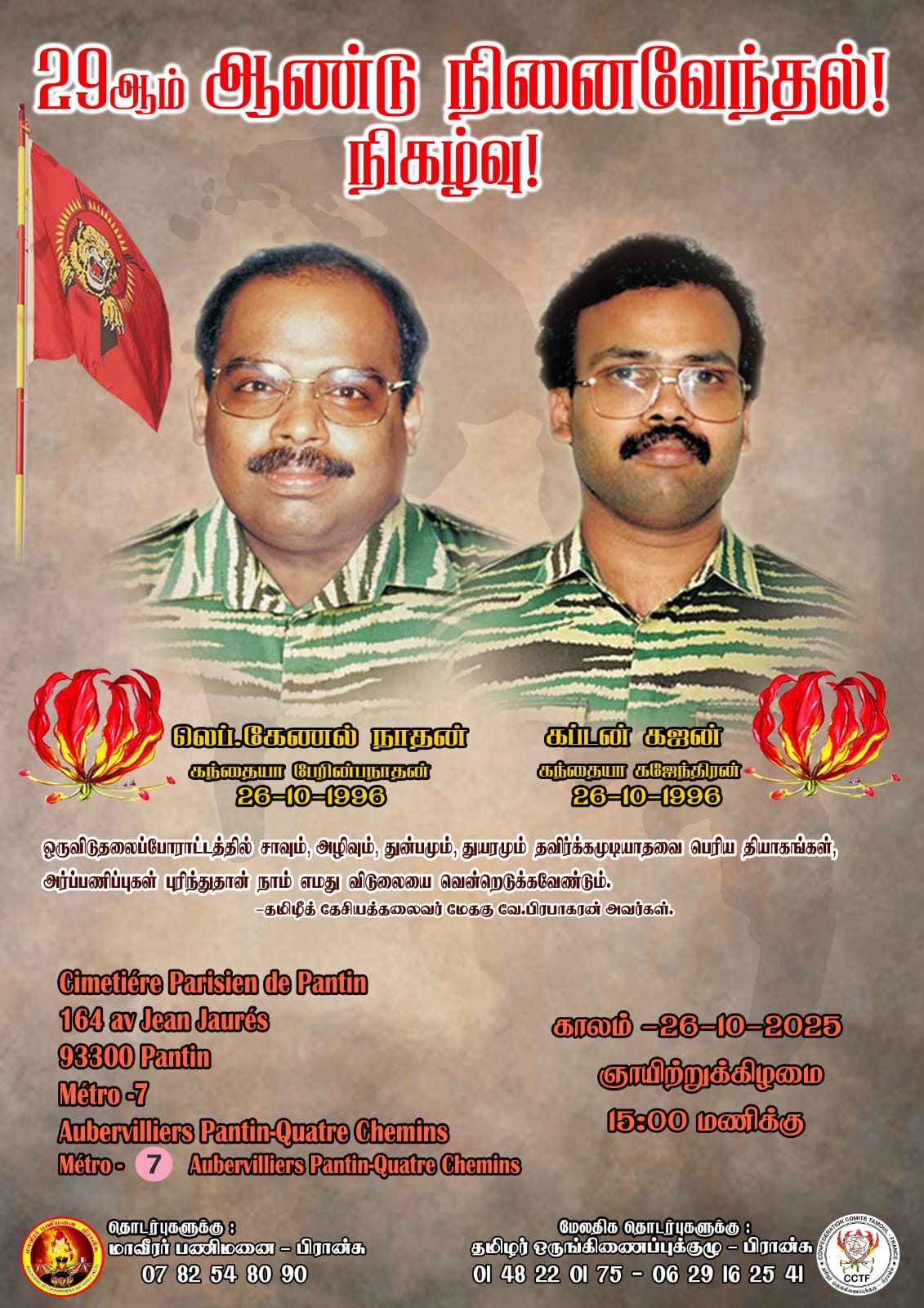 - லெப்.கேணல் நாதன், கப்டன் கஜன் ஆகியோரின் 29 ஆம் ஆண்டு நினைவேந்தல் நிகழ்வு!