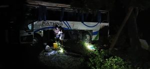 குறித்த பஸ் கட்டுப்பாட்டை இழந்து வீதியை விட்டு விலகி விபத்துக்குள்ளாகியுள்ளதாக தெரியவந்துள்ளது.