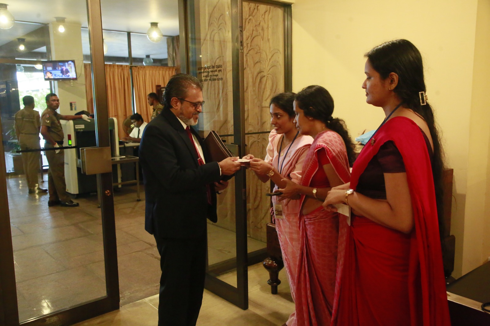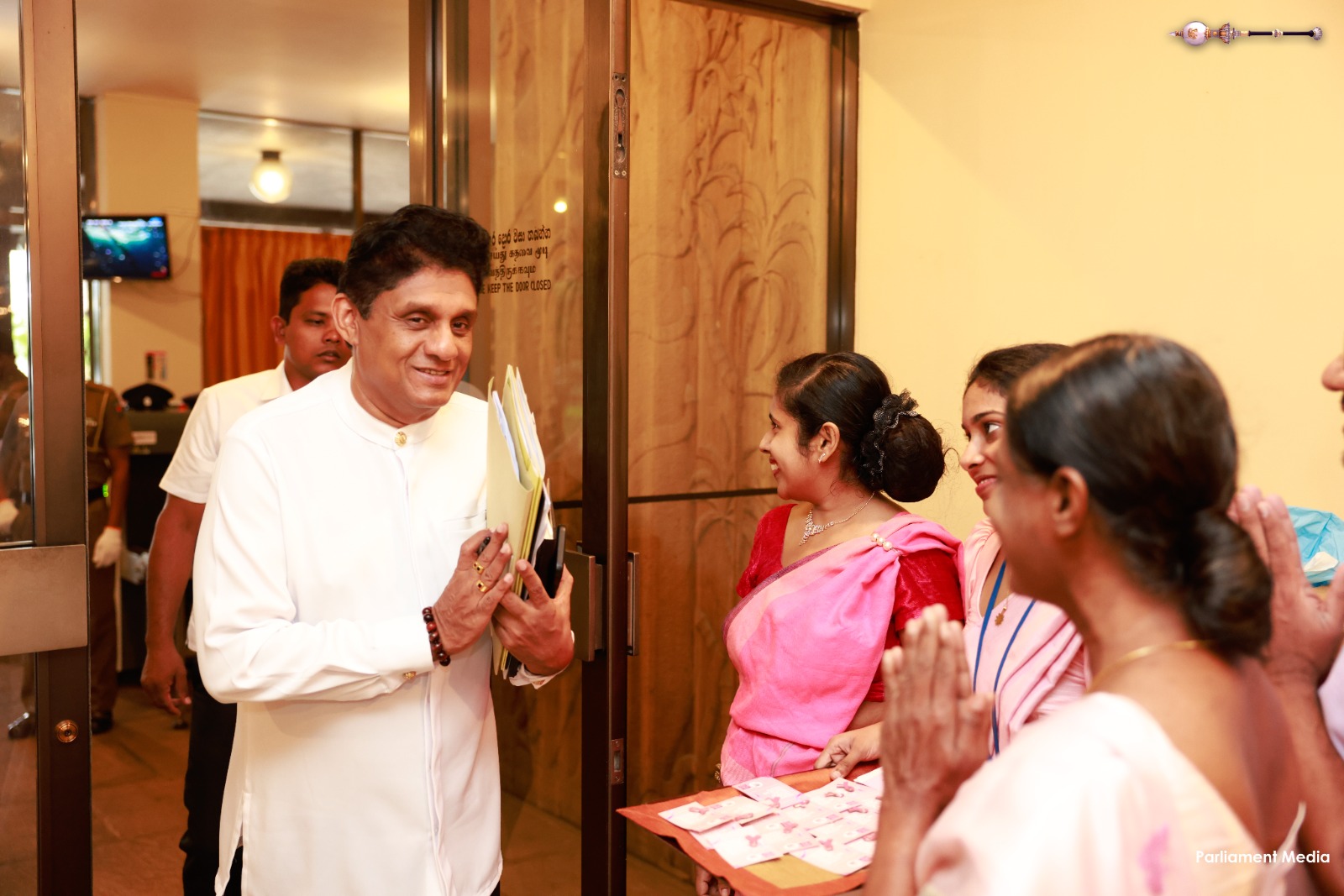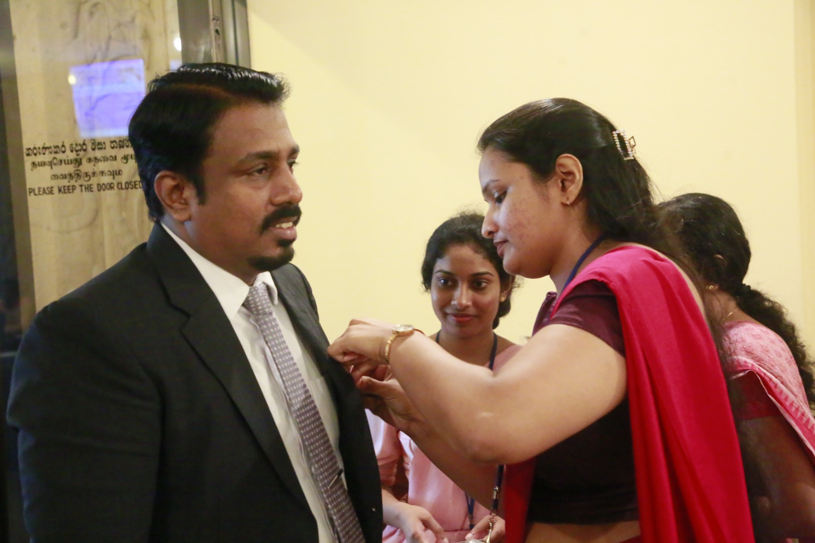 பெண் பாராளுமன்ற உறுப்பினர்களின் ஒன்றியத்தினால் ஏற்பாடு செய்யப்பட்ட இந்த நிகழ்வில் பிரதி சபாநாயகர் ரிஸ்வி சாலி, குழுக்களின் பிரதித் தவிசாளர் ஹேமாலி வீரசேகர, ஆளும் கட்சியின் முதற்கோலாசான், அமைச்சர் (வைத்தியர்) நலிந்த ஜயதிஸ்ஸ, எதிரிக்கட்சித் தலைவர் சஜித் பிரேமதாச மற்றும் எதிர்க்கட்சியின் முதற்கோலாசான் கயந்த கருணாதிலக ஆகியோருக்கு சின்னங்களும் கைப்பட்டிகளும் அணிவிக்கப்பட்டன.