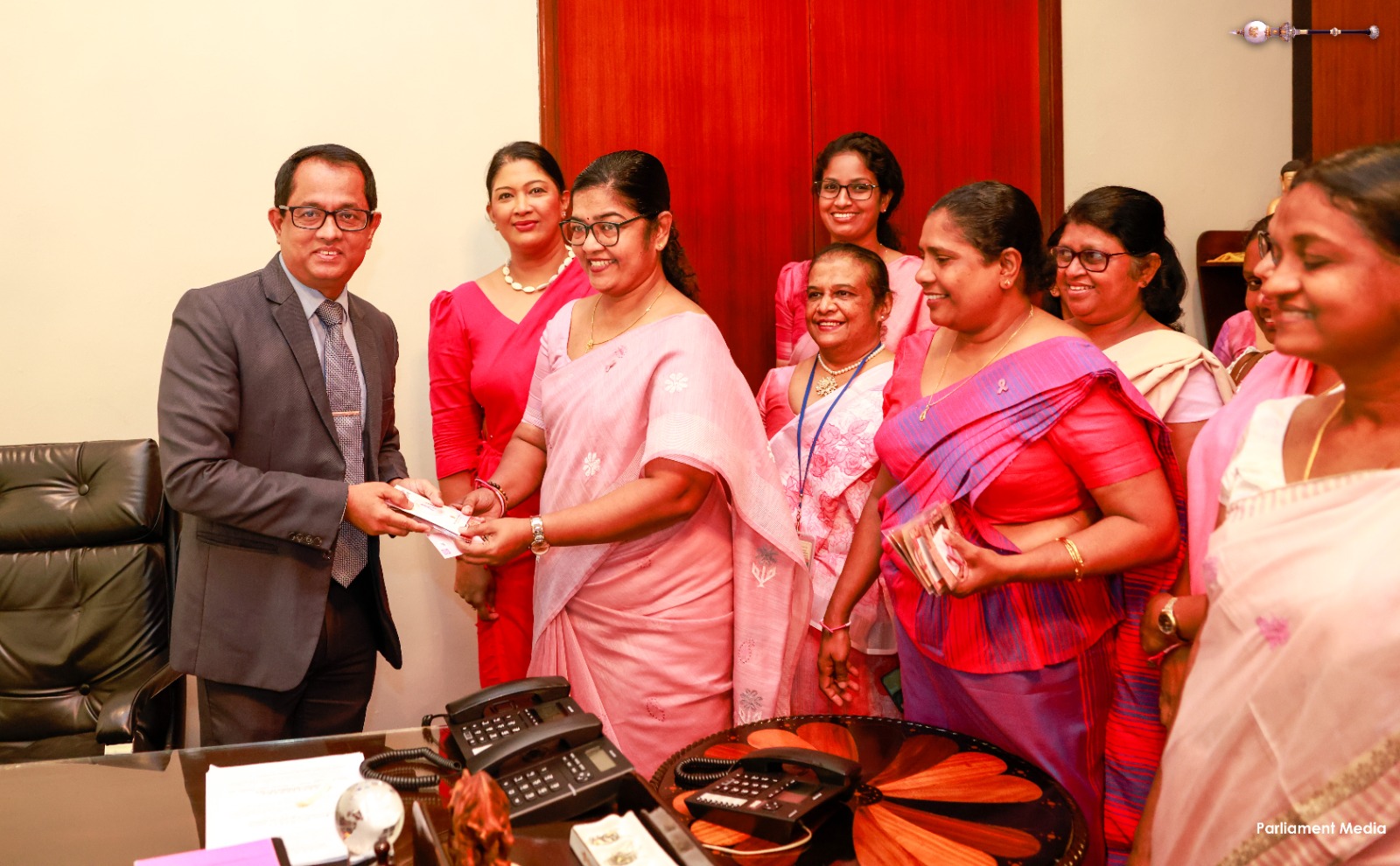 அத்துடன், பாராளுமன்ற உறுப்பினர்களின் நுழைவாயில் பகுதியில் சகல பாராளுமன்ற உறுப்பினர்களுக்கும் மார்பகப் புற்றுநோய்க்கு எதிரான விழிப்புணர்வூட்டும் வகையிலான சின்னமும் கைப்பட்டியும் அணிவிக்கப்பட்டன. அத்துடன், ஒன்றியத்தினால் பாராளுமன்ற பதில் செயலாளர் நாயகம் சமிந்த குலரத்ன மற்றும் உதவிச் செயலாளர் நாயகம் ஹன்ச அபேரத்ன ஆகியோருக்கும் சின்னமும் கைப்பட்டியும் அணிவிக்கப்பட்டன.
