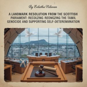 இலங்கையில் தமிழ் மக்களுக்கு இழைக்கப்பட்ட அநீதிகள் மற்றும் இன அழிப்புக்கான கோரிக்கைகளுக்கு உலக அரங்கில் நீதி வேண்டி நிற்பதற்கான ஒரு முக்கிய படிக்கல்லாக ஸ்கொட்லாந்து நாடாளுமன்றத்தில் ஒரு வரலாற்றுத் தீர்மானம் (S6M-19300) முன்மொழியப்பட்டுள்ளது. இத்தீர்மானம், இலங்கை உள்நாட்டுப் போரின் இறுதி நாட்களில் (மே 2009) தமிழ் மக்களுக்கு எதிராக நிகழ்த்தப்பட்ட பாரிய மனித உரிமை மீறல்கள் மற்றும் இனப்படுகொலைக் குற்றச்சாட்டுகளை அதிகாரப்பூர்வமாக அங்கீகரிப்பதுடன், தமிழர்களின் சுயநிர்ணய உரிமையை ஆதரிக்கவும் கோருகிறது.