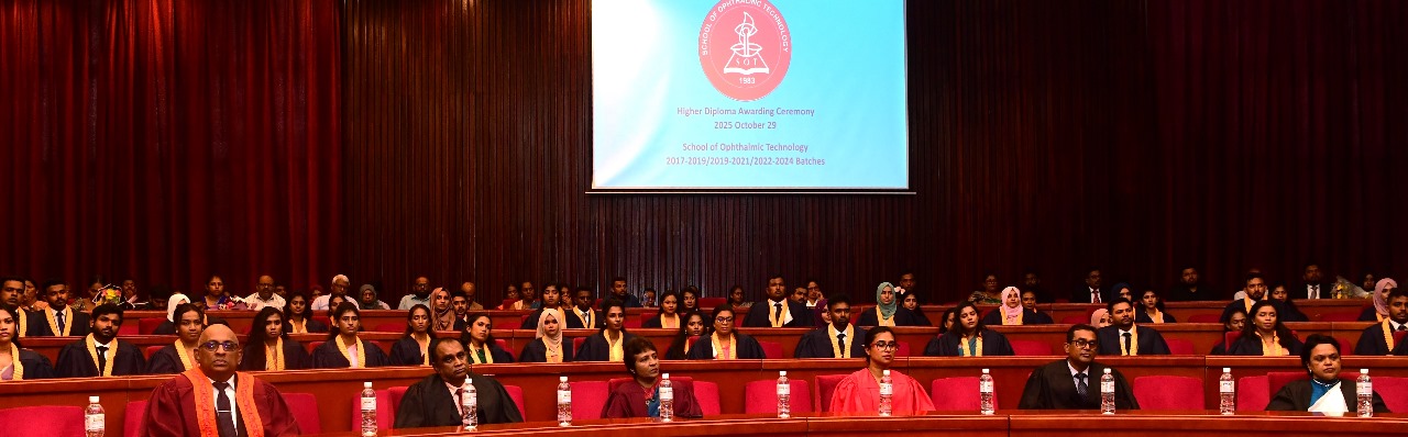 கண் சம்பந்தமான சம்பந்தமான தொழில்நுட்ப கல்லூரியின் (School of Ophthalmic Technology) 2017-2019 / 2019-2021 / 2022-2024 தொகுதிகளில் இரண்டு வருட பயிற்சிக்குப் பிறகு 57 உதவி கண் தொழில்நுட்ப வல்லுநர்களுக்கான உயர் டிப்ளோமா (Higher Diploma Awarding Ceremony) வழங்கும் விழா இன்று புதன்கிழமை (29) காலை பண்டாரநாயக்க நினைவு மாநாட்டு மண்டபத்தில் சுகாதார துணை அமைச்சர் வைத்தியர் ஹன்சக விஜயமுனி தலைமையில் நடைபெற்றது.