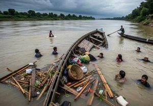 நீரோட்டம் அதிகமாக இருந்ததால் படகு ஆற்றில் கவிழ்ந்திருக்கலாம் என சந்தேகம் வெளியிடப்பட்டுள்ளது.