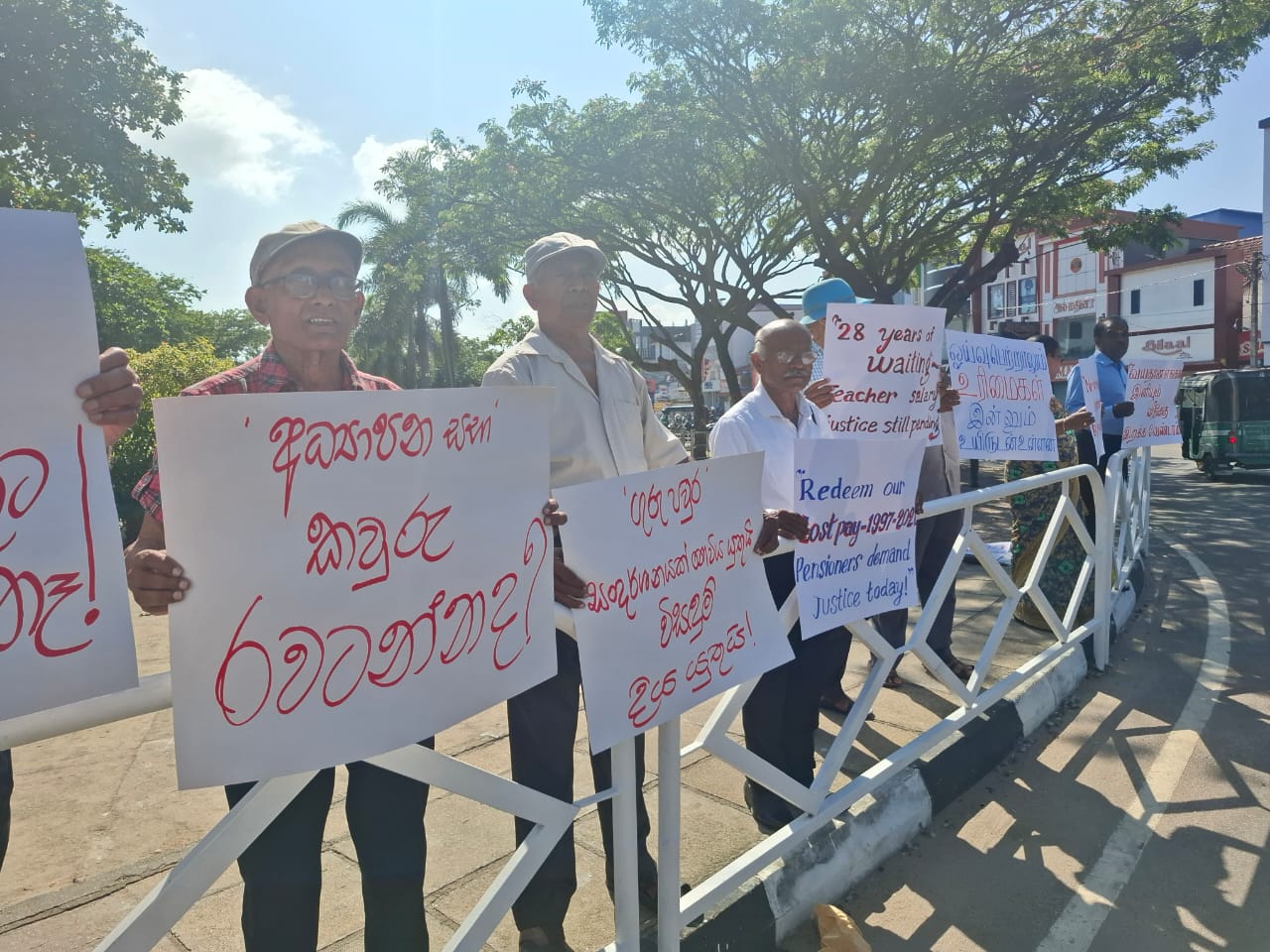 ஓய்வூதியம் பெறும் ஆசிரியர்கள் மட்டக்களப்பு காந்திபூங்காவிற்கு முன்னால் சனிக்கிழமை (01) போராட்டமொன்றை முன்னெடுத்துள்ளனர்.