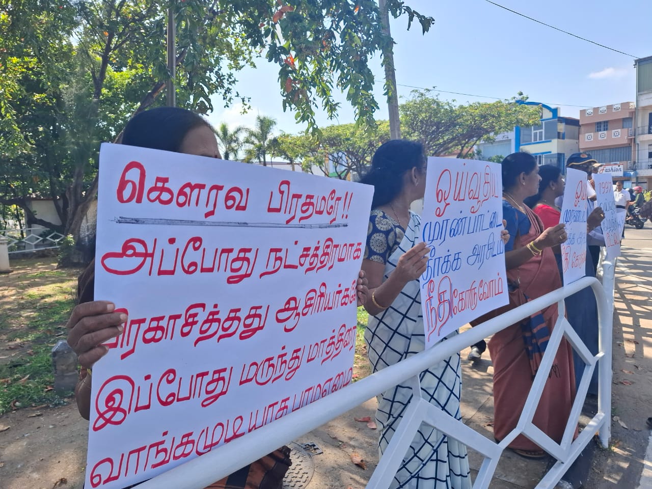 இன்றையதினம் பிரதமர் ஹரிணி அமரசூரிய மட்டக்களப்புக்கு விஜயம் மேற்கொள்ளவுள்ள நிலையில், இந்த கவனயீர்ப்பு போராட்டம் முன்னெடுக்கப்பட்டுள்ளமை குறிப்பிடத்தக்கது.