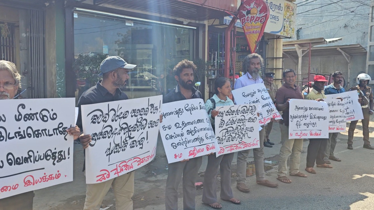 சமவுரிமை இயக்கத்தின் ஏற்பாட்டில் பல கோரிக்கைகளை முன்வைத்து சனிக்கிழமை (01) யாழ்ப்பாண நகரப் பகுதியில் கவனஈர்ப்பு போராட்டம் ஒன்று முன்னெடுக்கப்பட்டது.